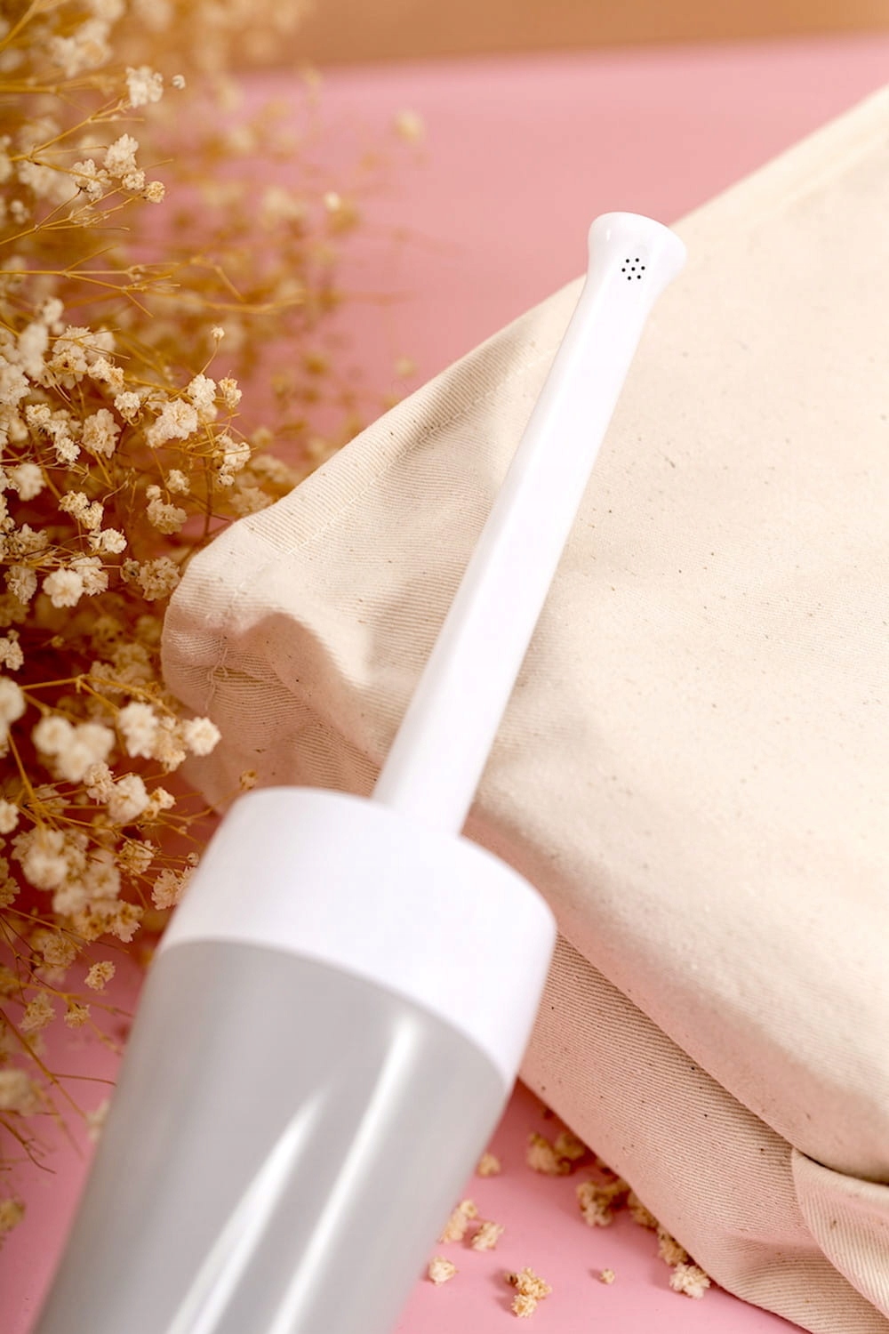 Відкрутіть ковпачок і витягніть насадку для душа. Зафіксуйте його в гайці. Наповніть пляшечку теплою водою або іншим розчином для інтимної гігієни. Використовуйте міні-душ у перевернутому положенні, насадкою донизу. Після використання злийте з флакона залишки рідини, промийте його проточною водою та вимийте насадку для душа з милом.