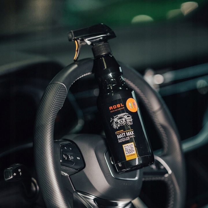 ADBL Matt Max – покриття для внутрішнього пластику, що залишає матове покриття. Живить і затемнює поверхню. Забезпечує матове покриття навіть на блискучих від природи структурах. Має чудові покривні властивості. Ідеально підходить для вимогливих гладких поверхонь.