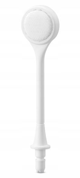 Вода обережно тече з кінця насадки тканиною, зменшуючи тертя між язиком і щіткою, що забезпечує ніжне і м'яке очищення.