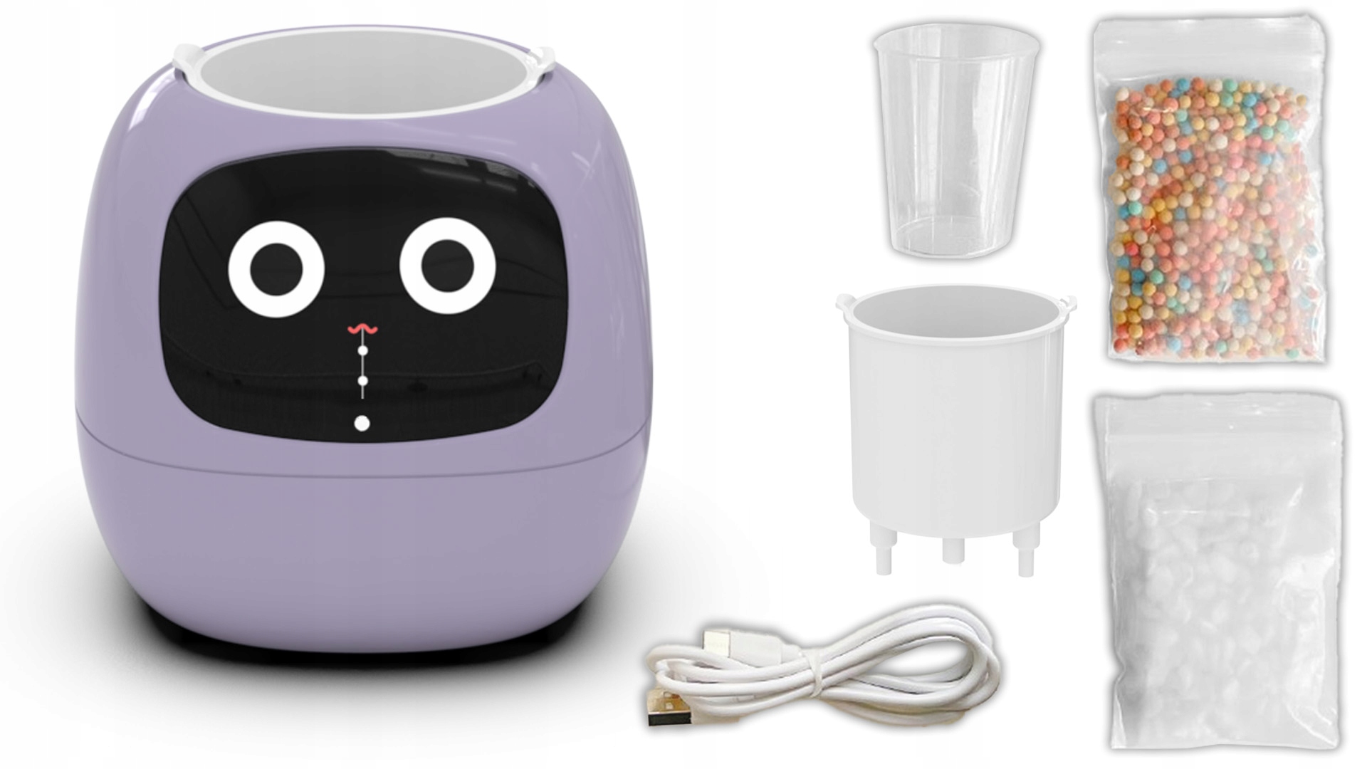 - Інтелектуальний горщик, що нагадує тварину, яка відчуває дотик людини і виражає свої емоції та потреби, змінюючи міміку на дисплеї.