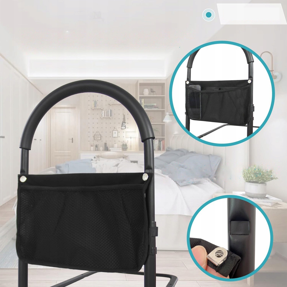 - Поручні для ліжка мають знімну сумку для зберігання. Ця сумка дозволяє зберігати повсякденні особисті речі та аксесуари, такі як окуляри, книги, серветки та медичне приладдя, не встаючи з ліжка.