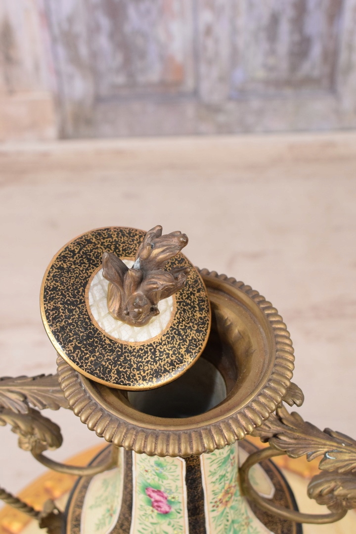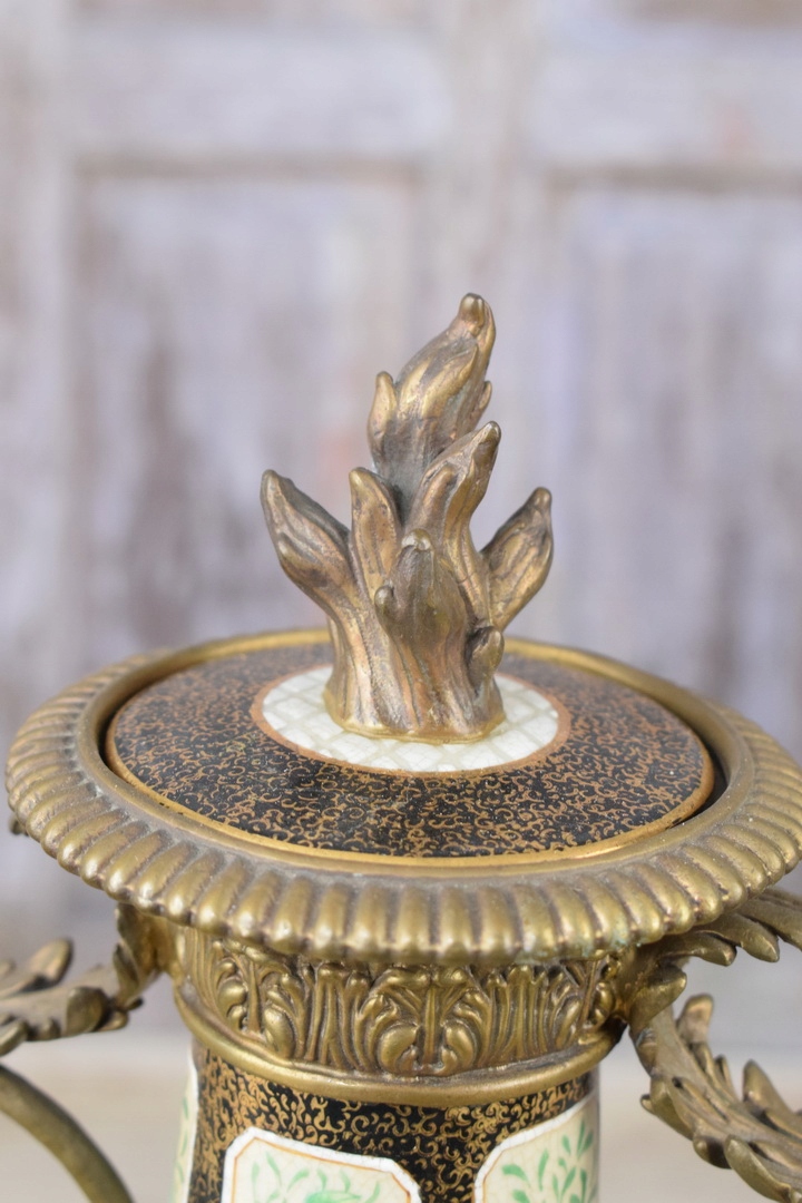 PORCELANOWY WAZON AMFORA - Zielone Kwiaty - Porcelana + Brąz