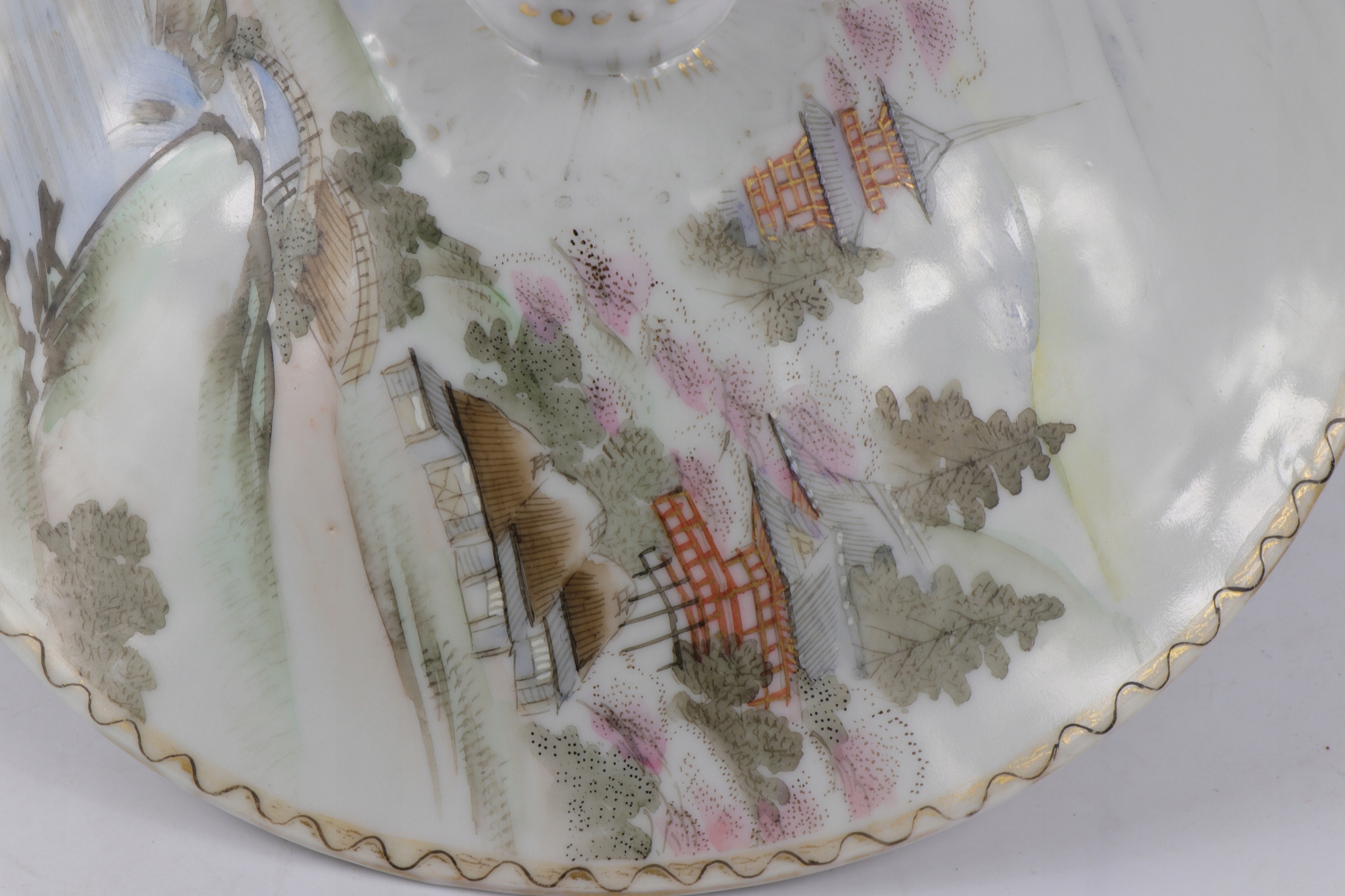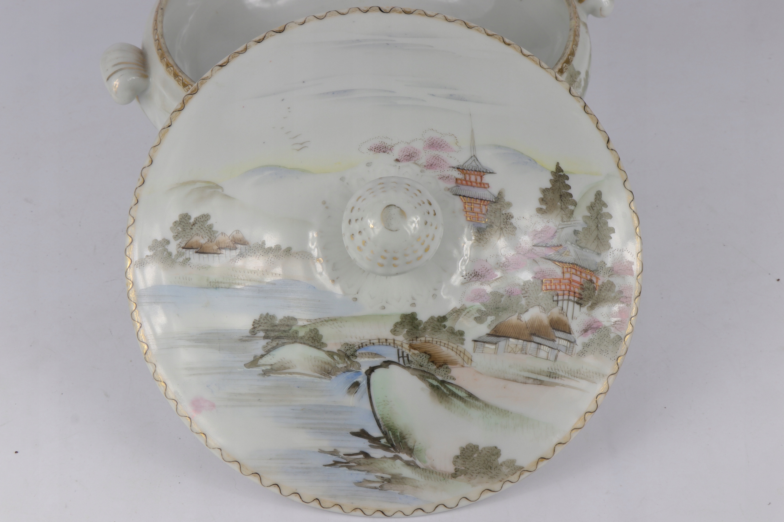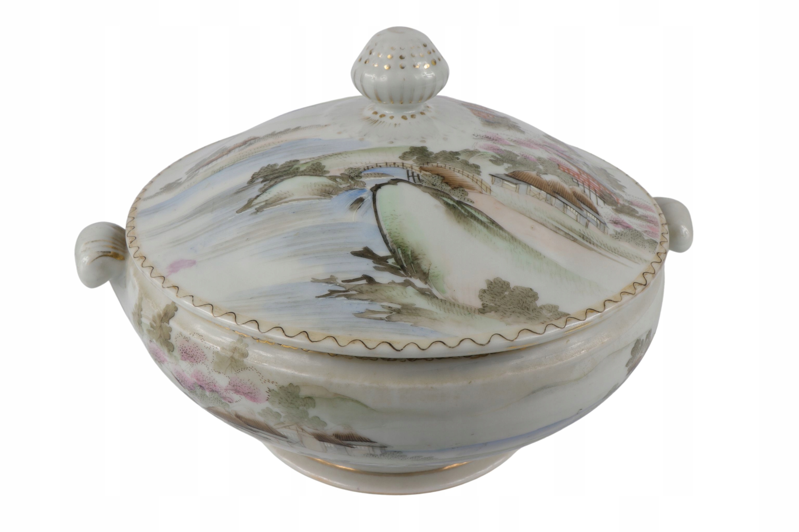 японська порцелянова ваза, підписана зі знаку cinnober, характерним для порцеляна кутані. Порцеляновий красиво пофарбований японським орнаментом гірського селища.