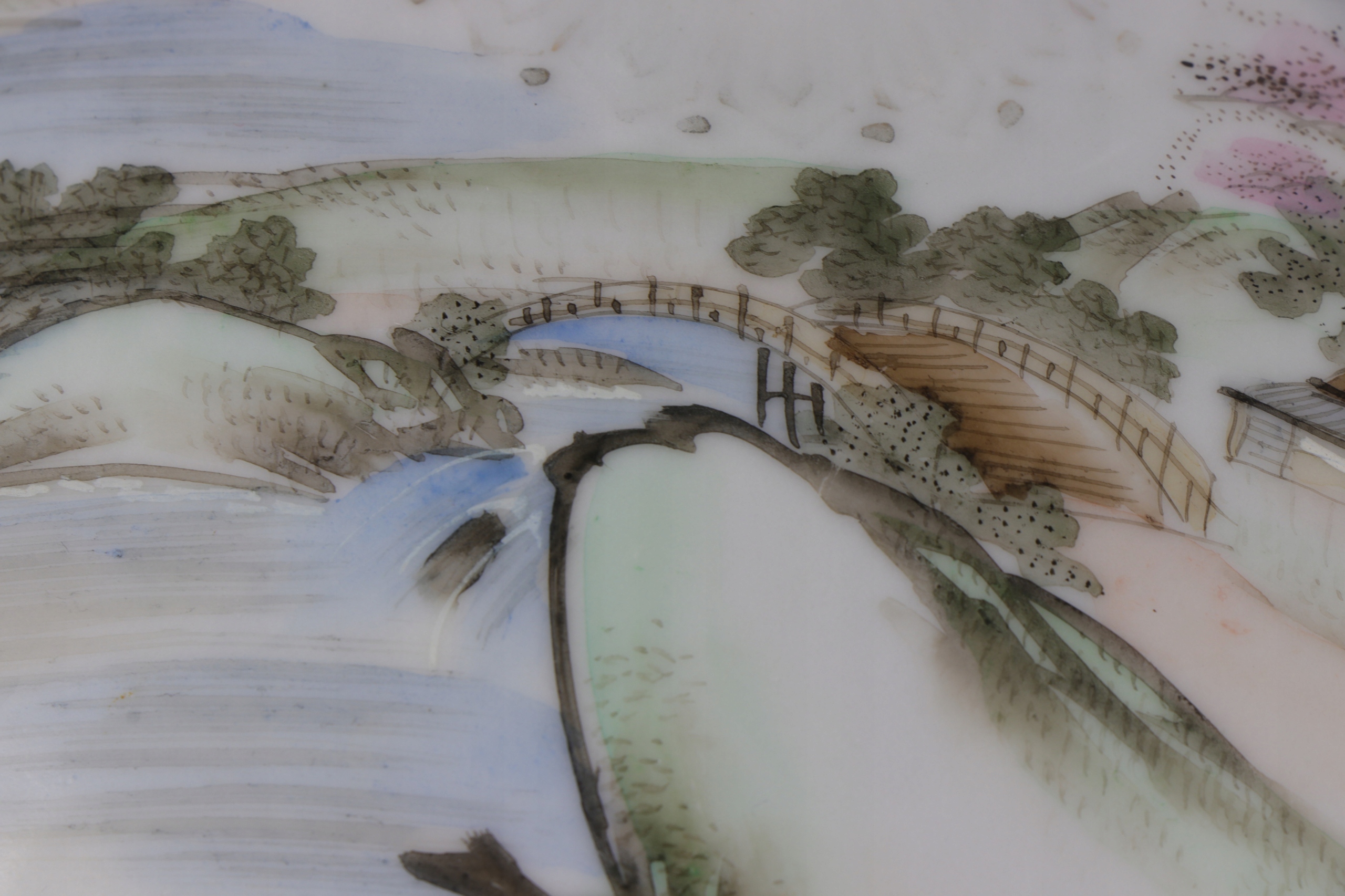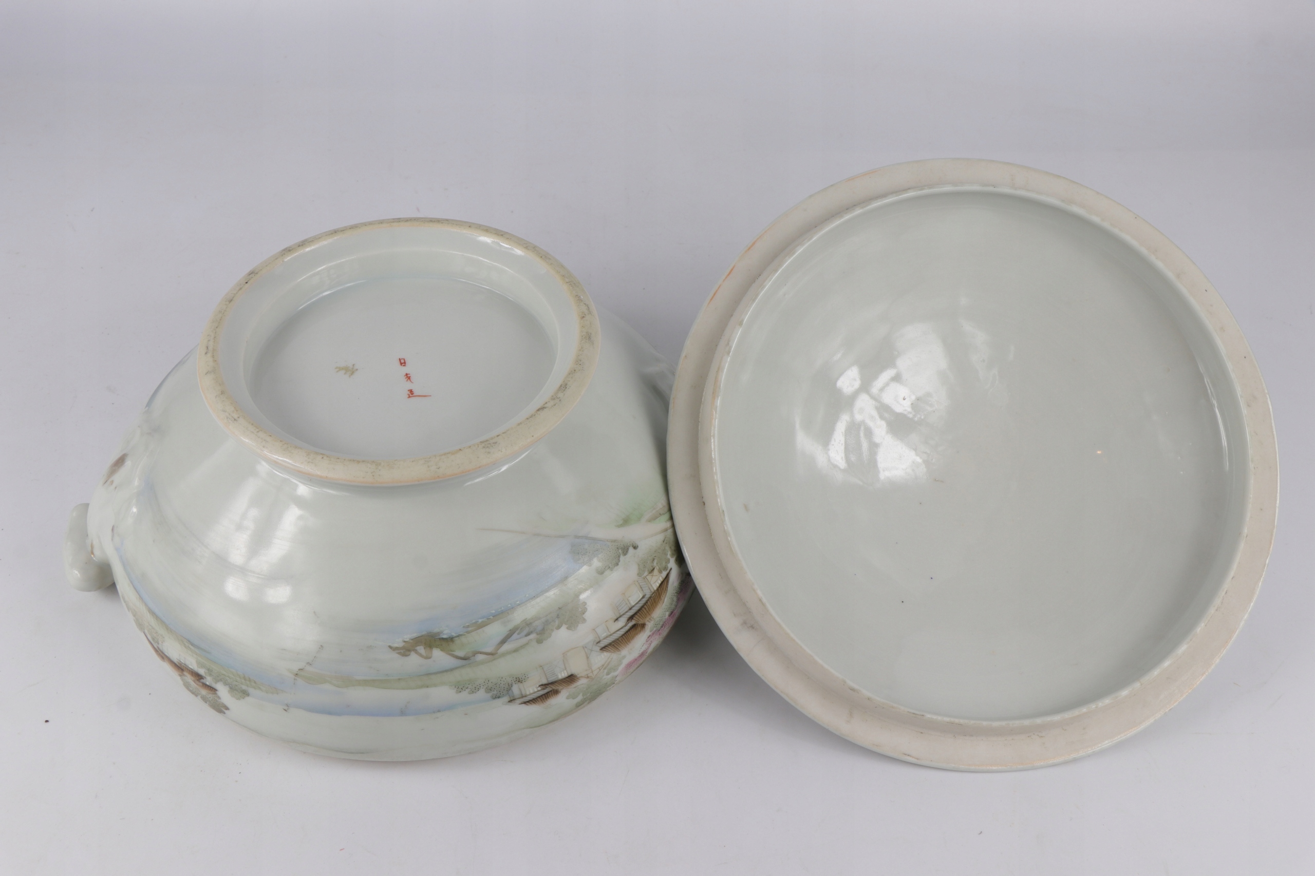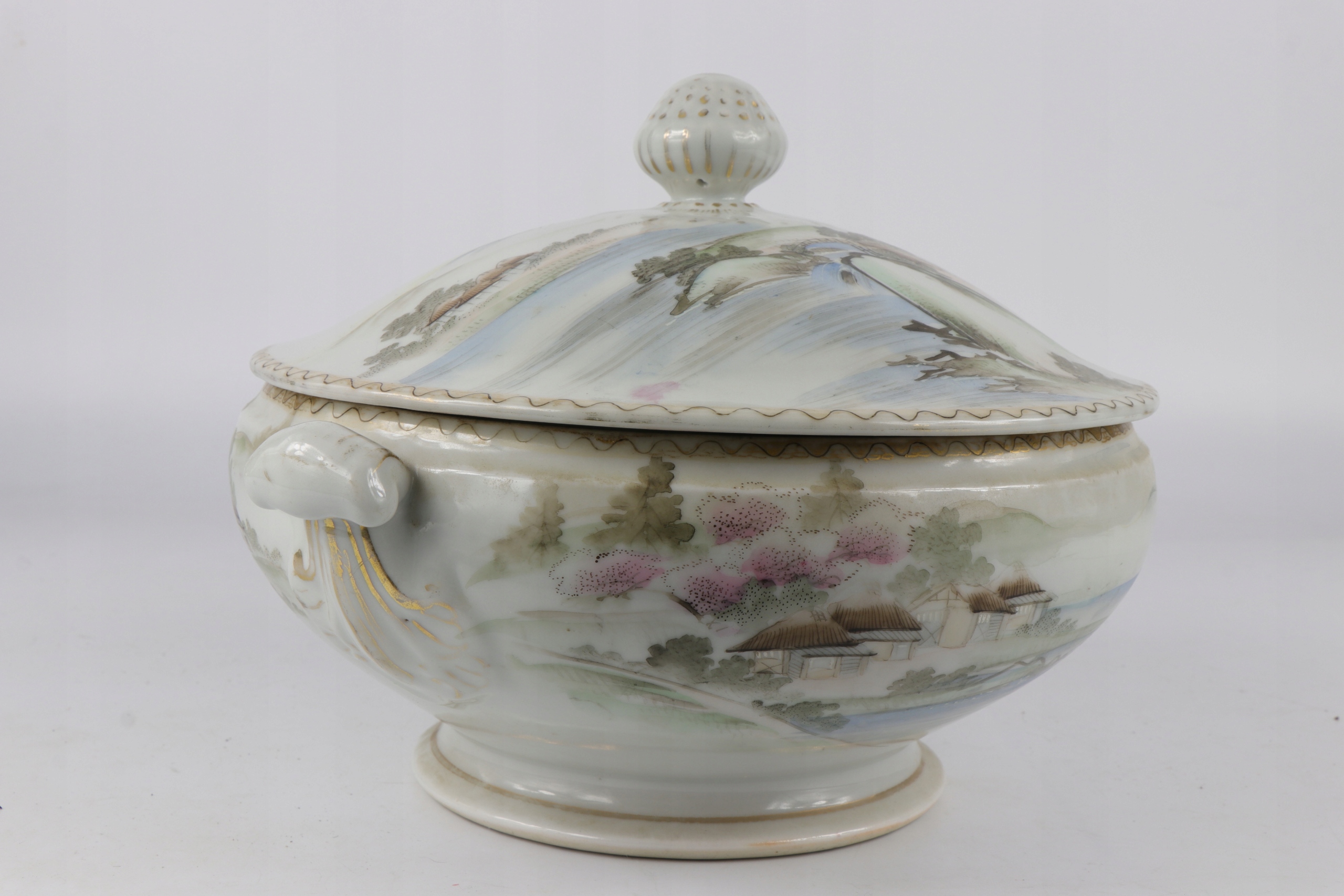 японська порцелянова ваза, підписана зі знаку cinnober, характерним для порцеляна кутані. Порцеляновий красиво пофарбований японським орнаментом гірського селища.