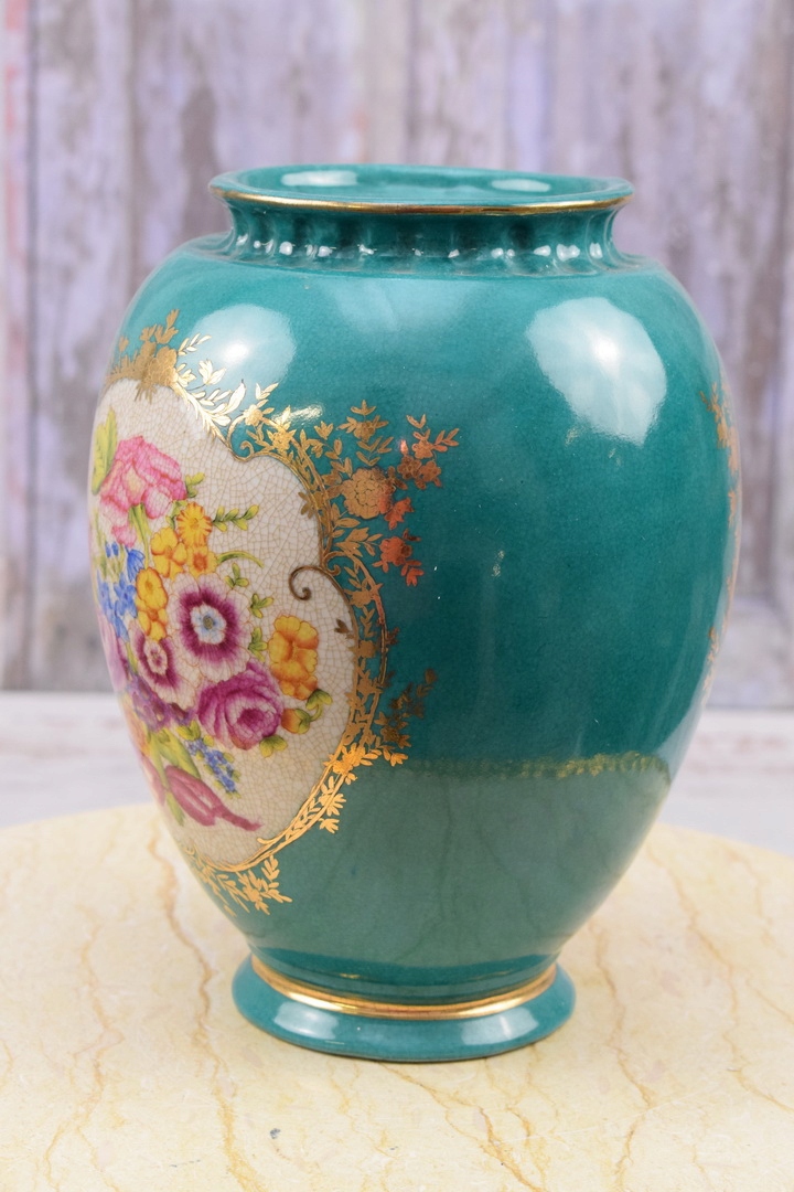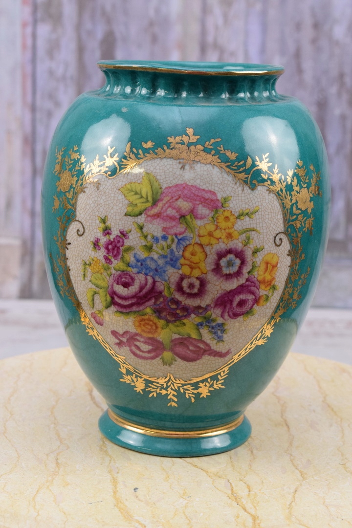 Порцелянова бірюзова ваза для квіткового горщика - модерн - підписана