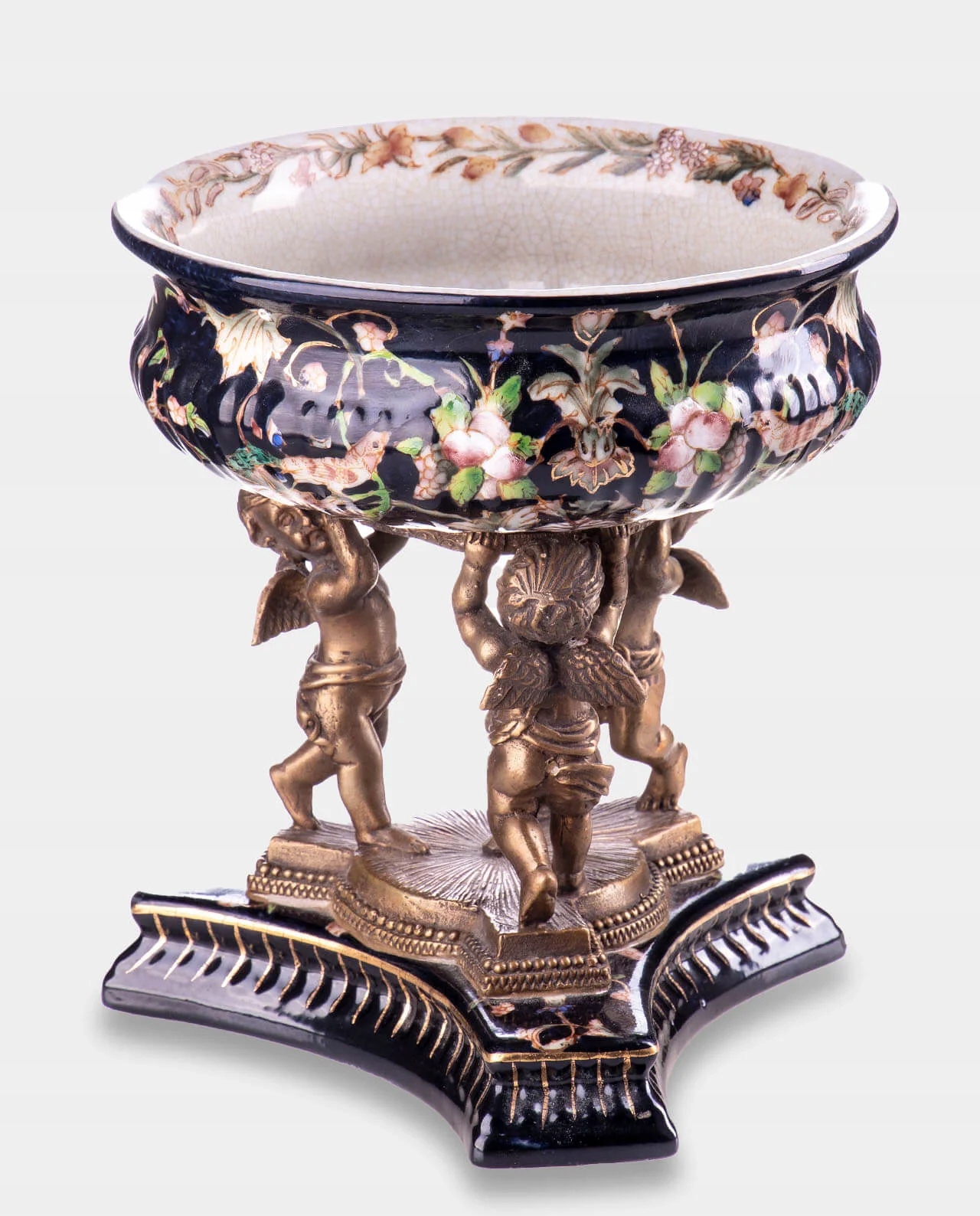 Порцелянова декоративна чаша з бронзовими ангелами