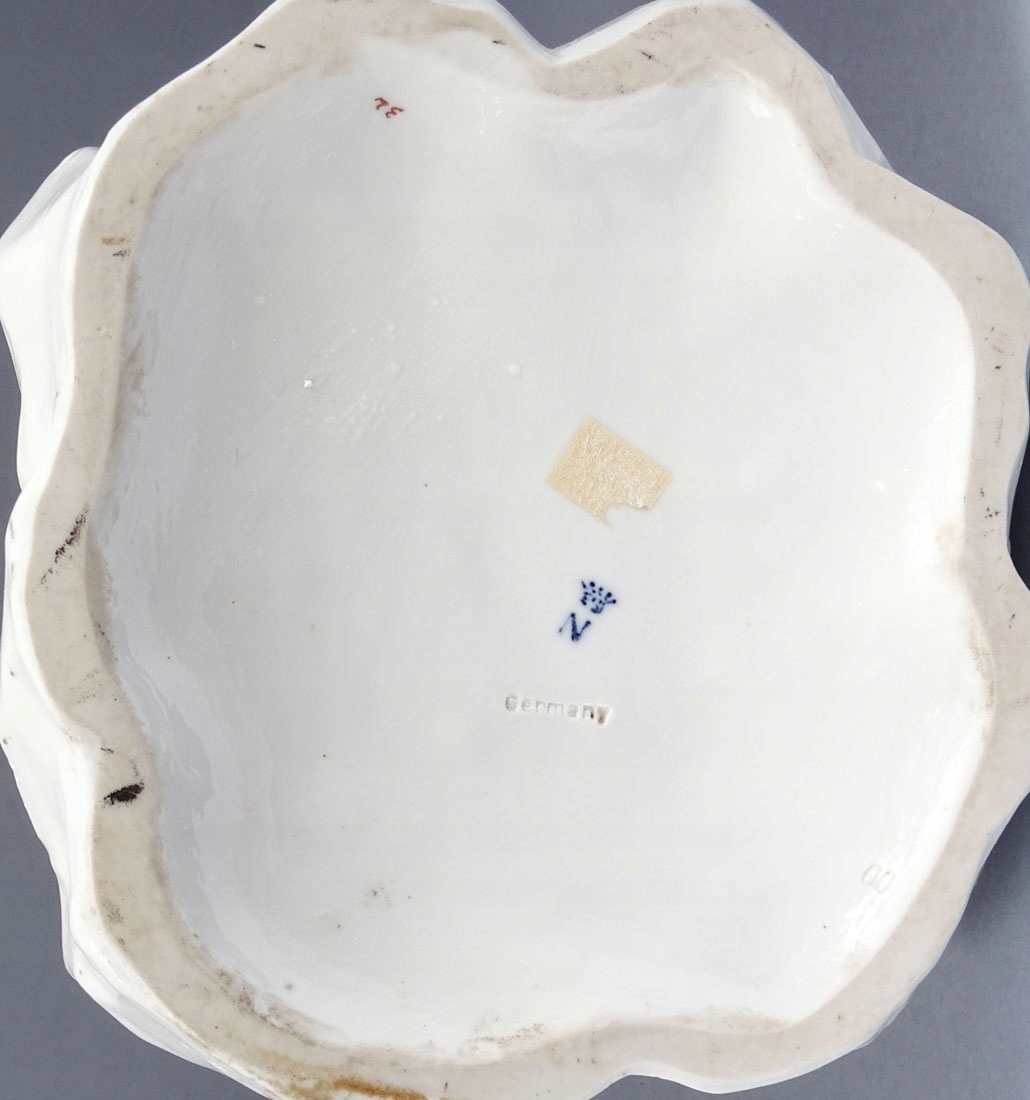 Під глазур’ю підписаний літерою «N». " з короною, знак мануфактури з Рудольштадта, Тюрінгія, Ernst Bohne Sohne, який використовувався в 1901 - 1937 роках.