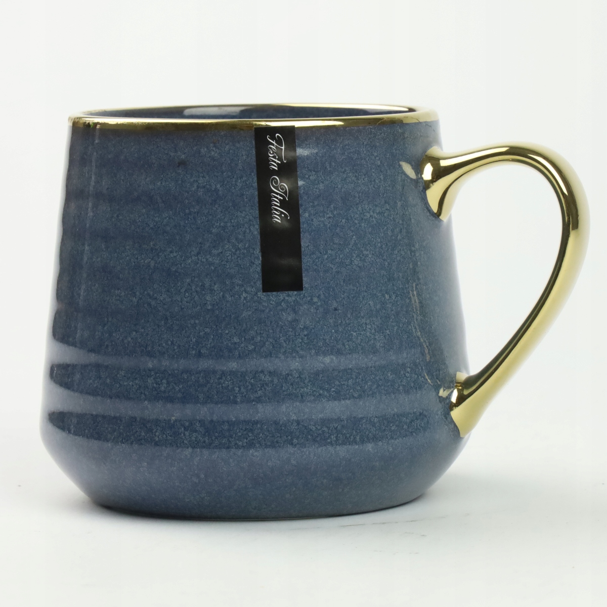 Порцелянова кавова чашка темно -синього чаю з золотим вухом 570 мл