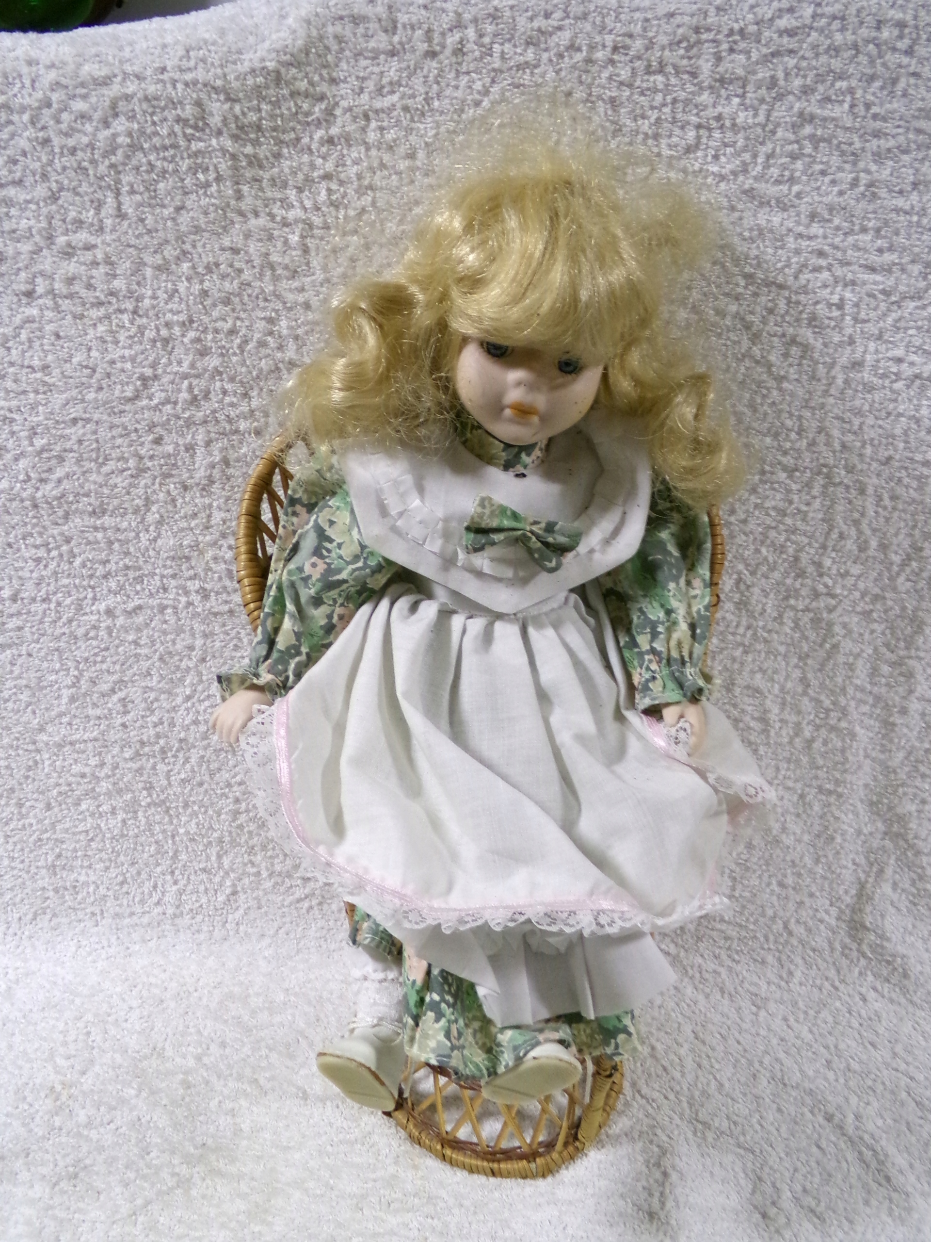 ПОРЦЕЛЯНОВА ЛЯЛЬКА З ПЛЕТЕНИМ КРІСЛОМ
