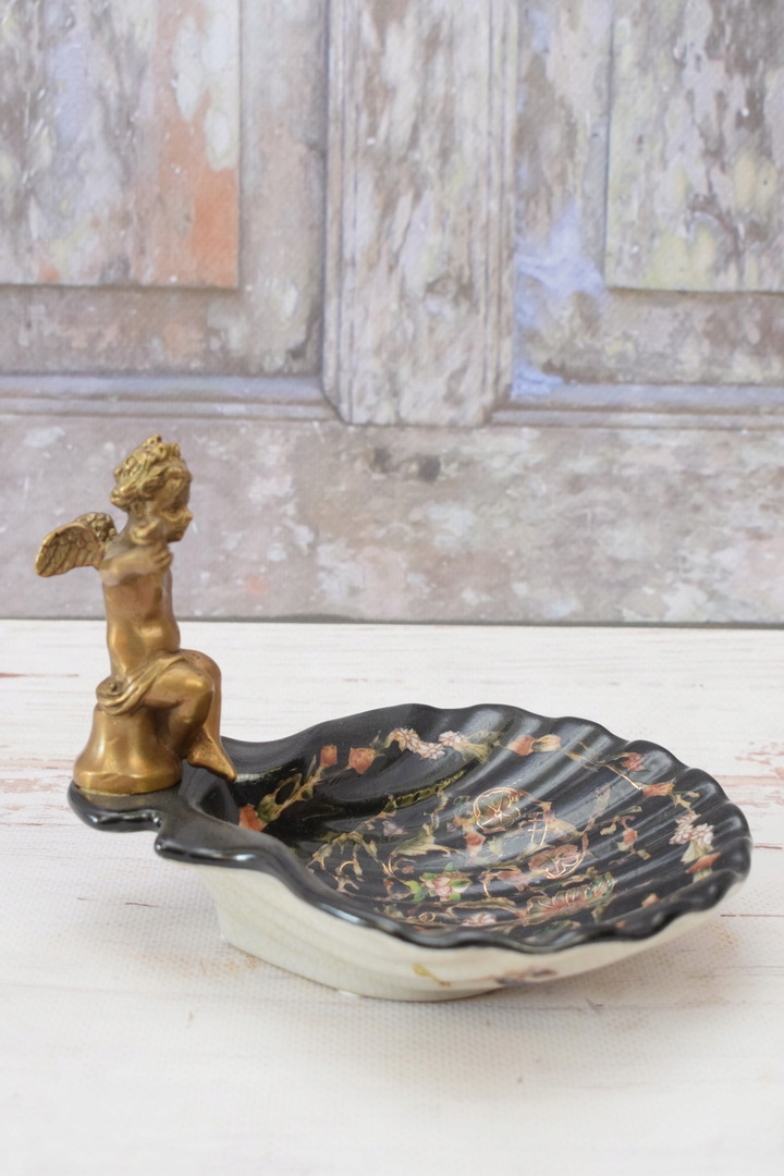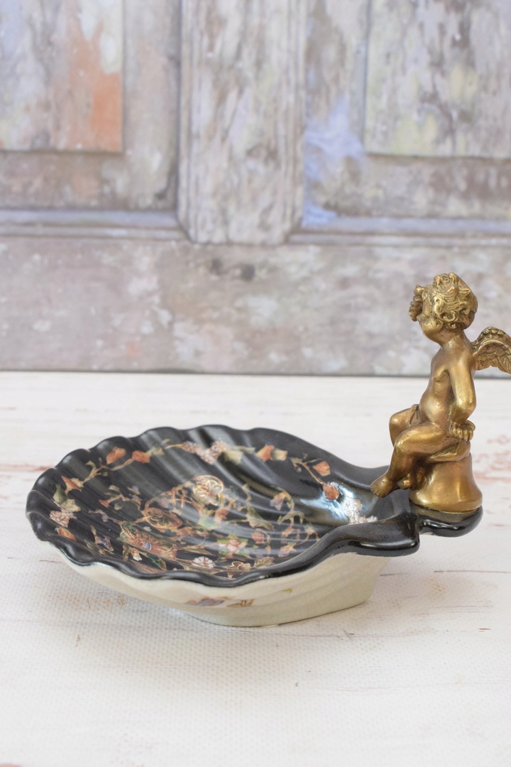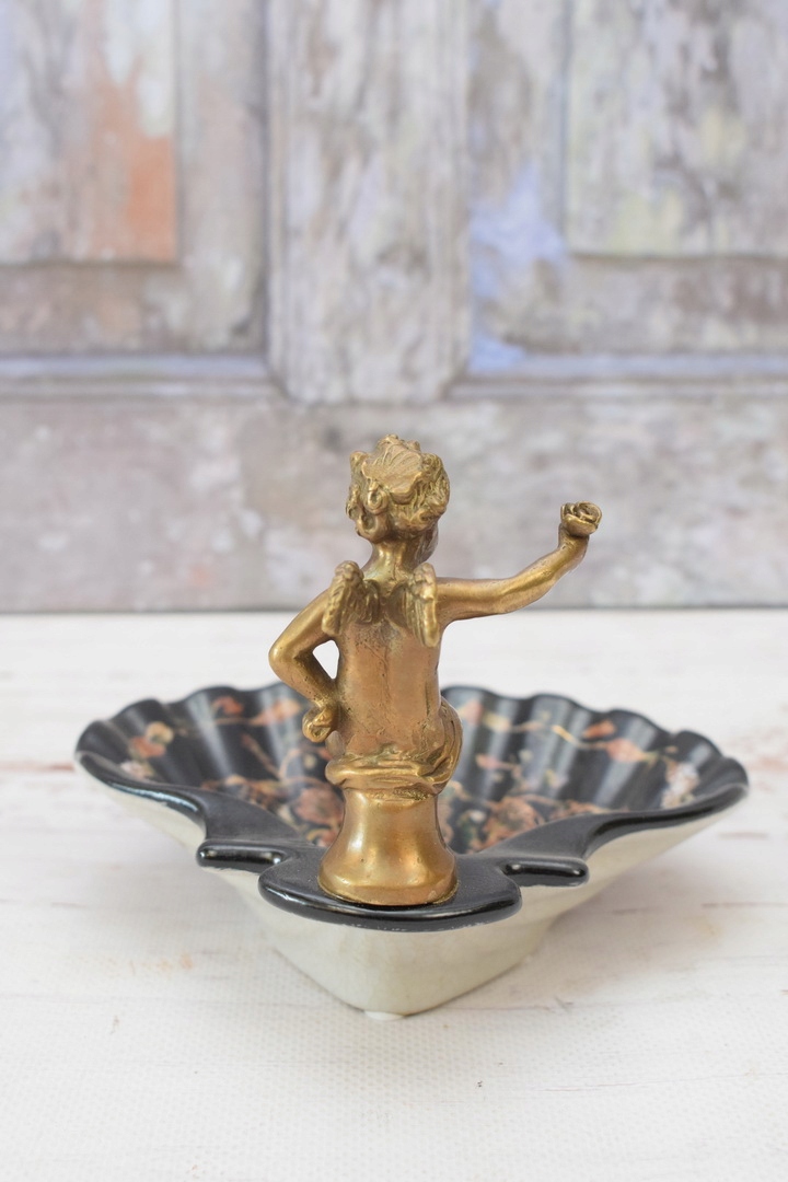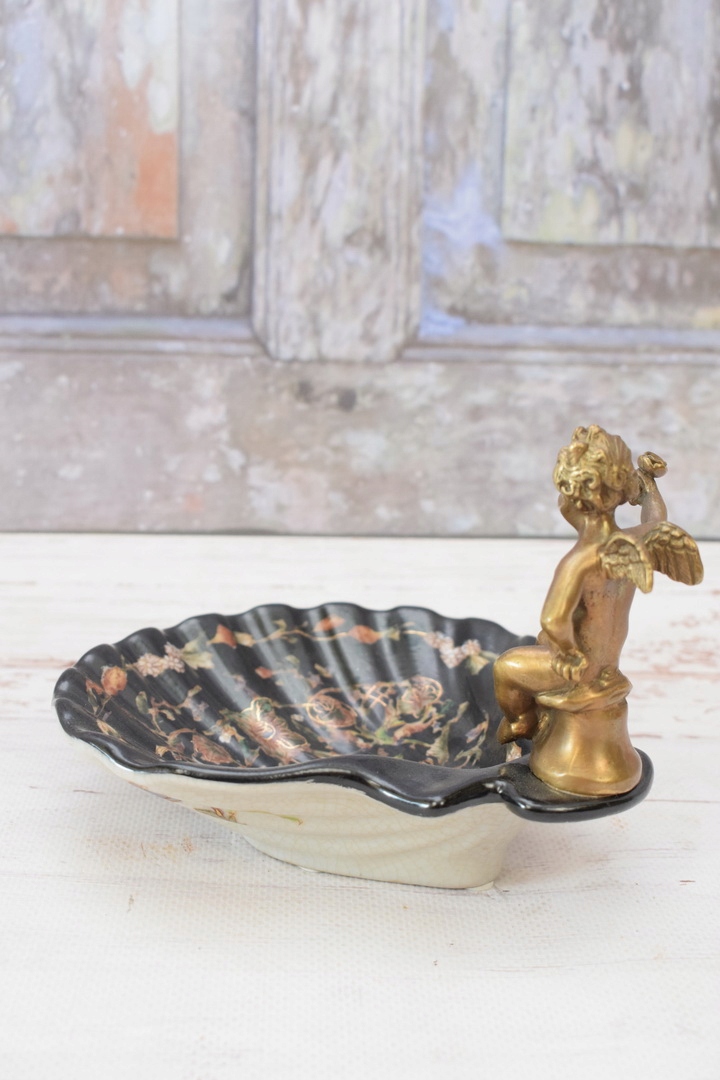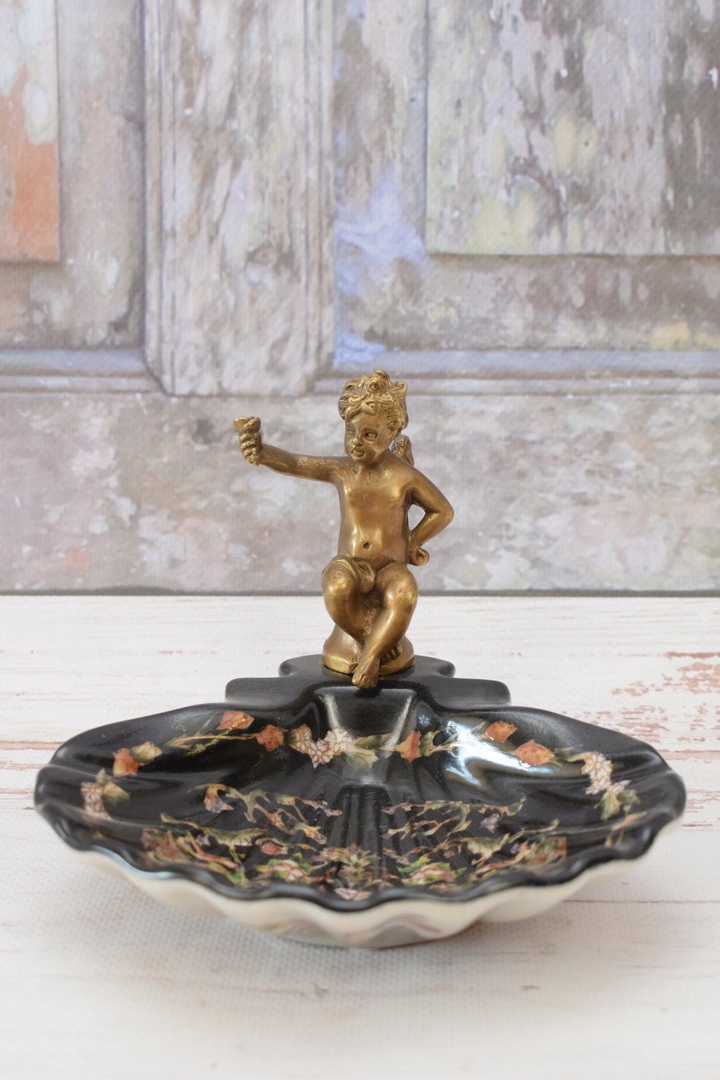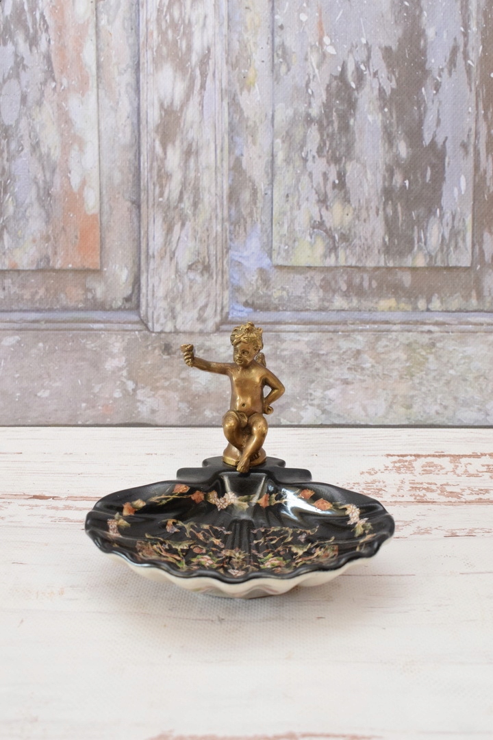 Порцелянова міні-тарілка - мильниця - порцеляна + бронзова фігурка Купідон