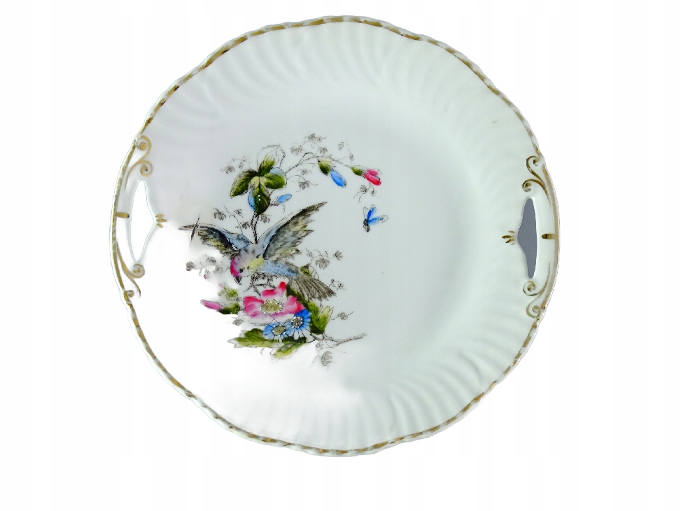 Діаметр 23,2 см, дуже гарний стан, видимий дефект виробництва біля крила папуги – властивість антикварної порцеляни, а не дефект.