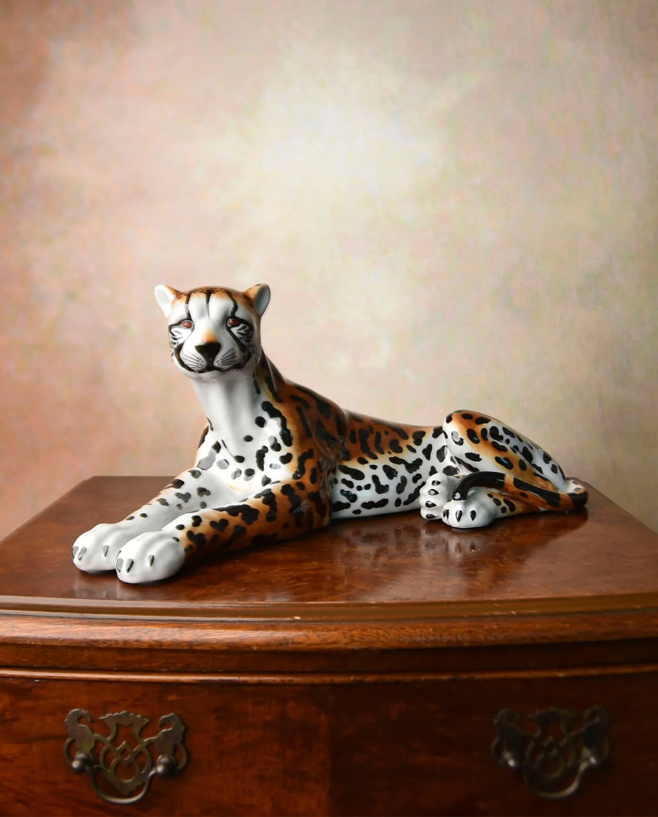 Порцелянова фігурка «Лежачий гепард» - елегантна і вишукана прикраса, яка привносить в інтер'єр нотки дикої природи. Виготовлена з порцеляни найвищої якості, ця фігурка розписана вручну з надзвичайною точністю, яка захоплює реалістичні деталі гепарда в лежачому положенні. Ідеально підходить для вітальні, офісу чи спальні, де він може бути центральною декоративною точкою.