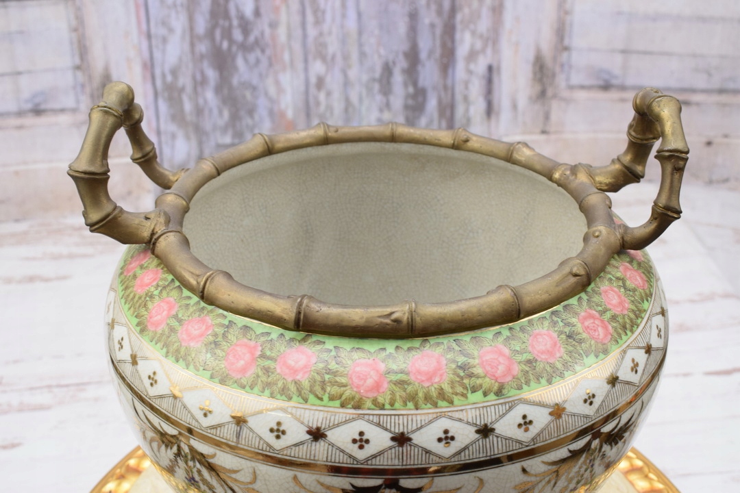 Порцелянова тарілка, розписана квітами - бронзове покриття - подарунок