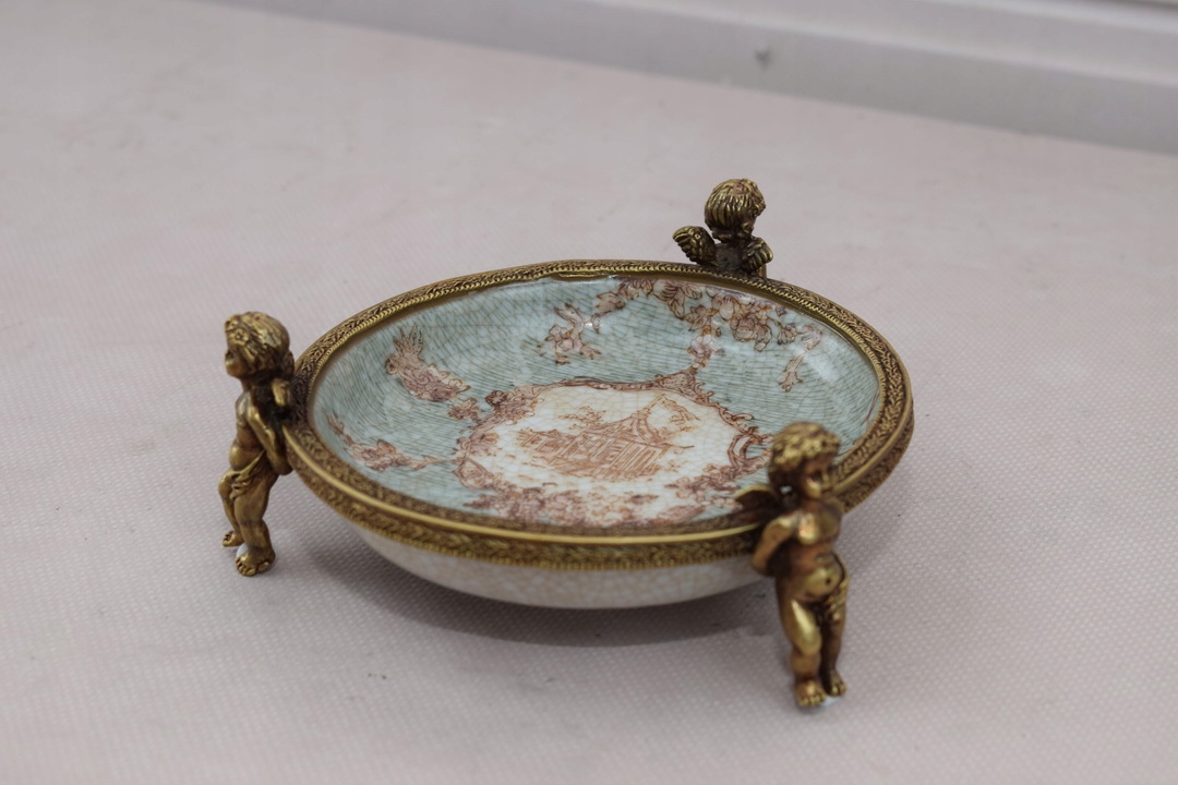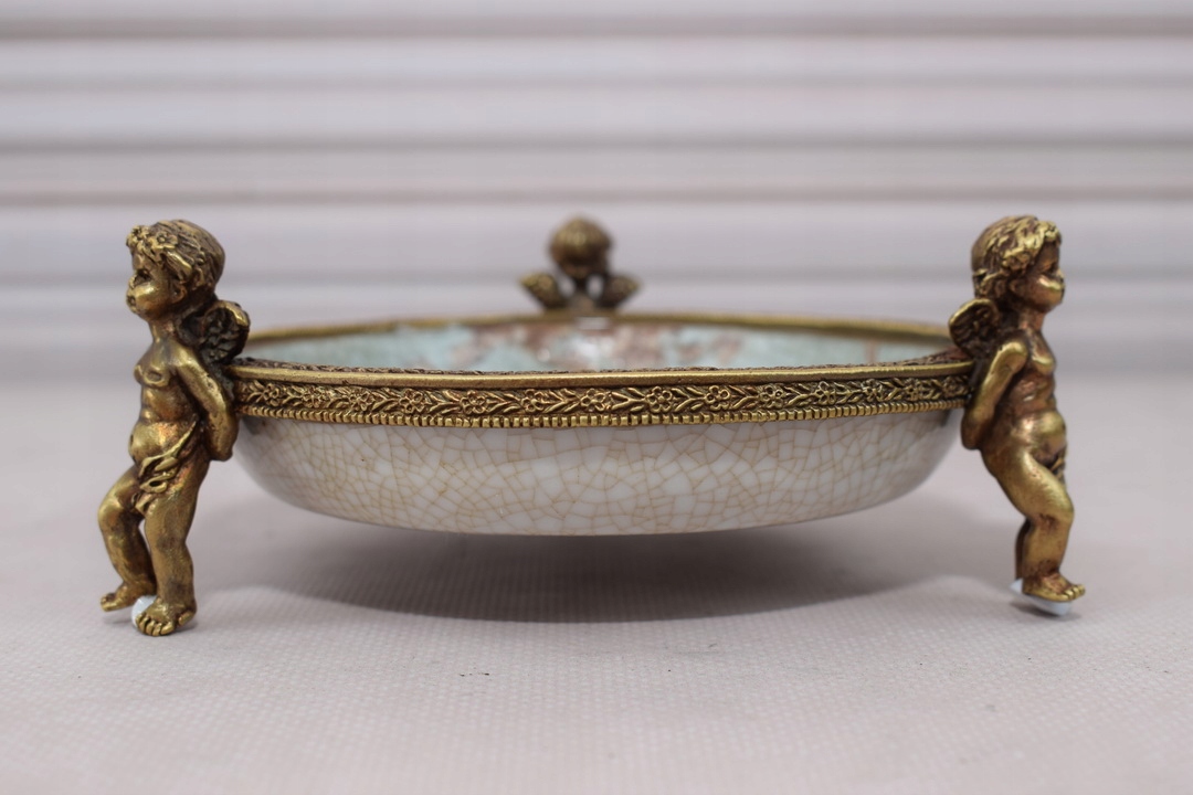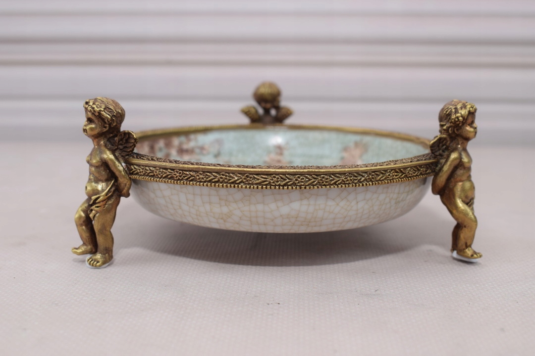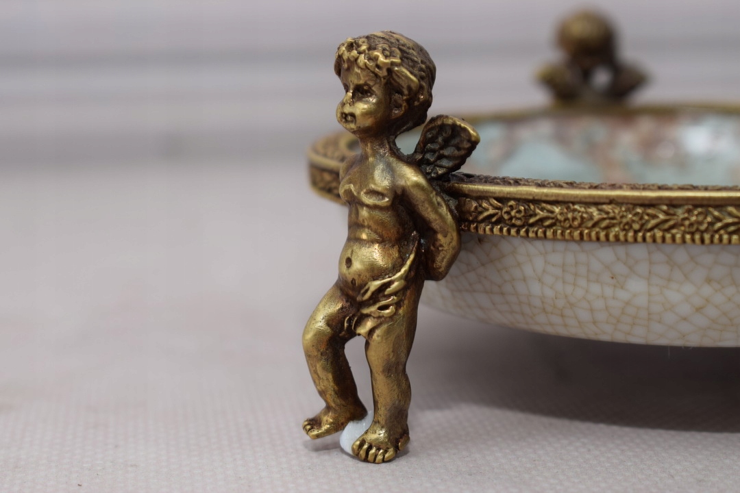 Порцелянова тарілка з бронзовим обідком - Три Купідони Ангели Модерн