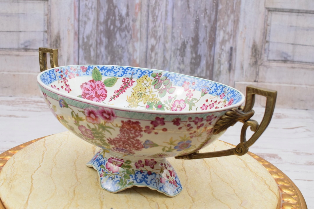 Здрастуйте, сьогодні хочу запропонувати вам чудову тарілку-жардиньєрку з порцеляни з бронзовою фурнітурою.