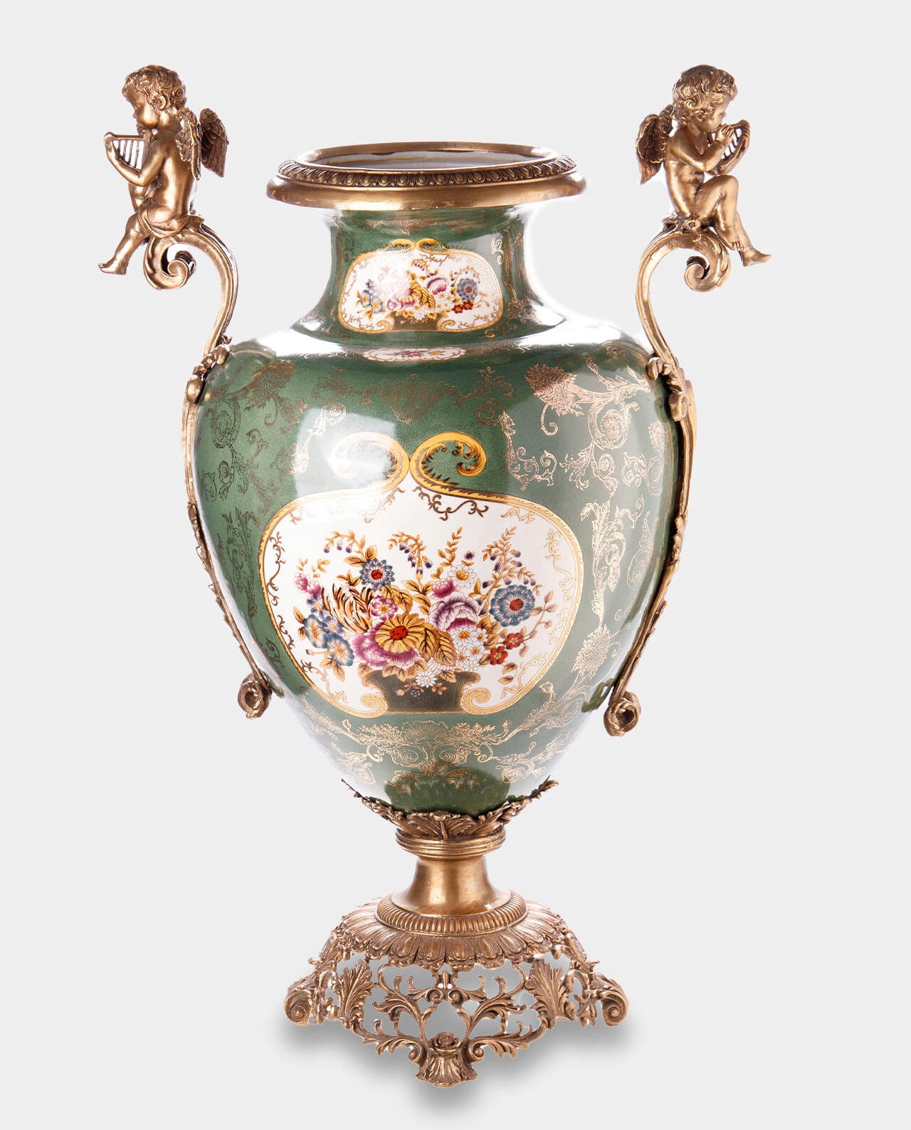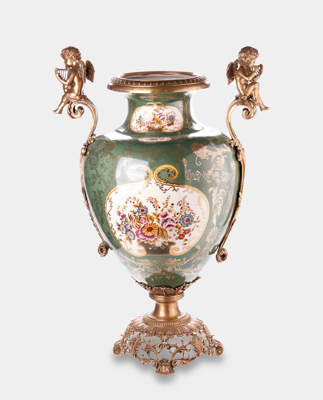 Порцелянова ваза з бронзовими ручками у формі херувимів