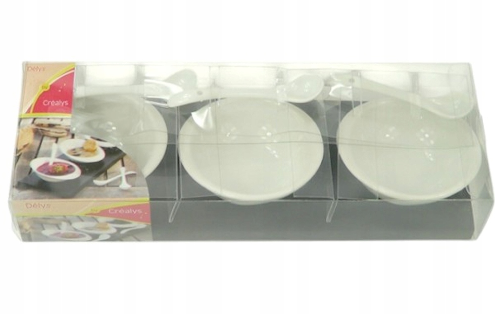 Набір містить 3 чаші та 3 чайні ложки з підставкою, які будуть працювати ідеально під час подачі закусочних соусів або страв із суші.