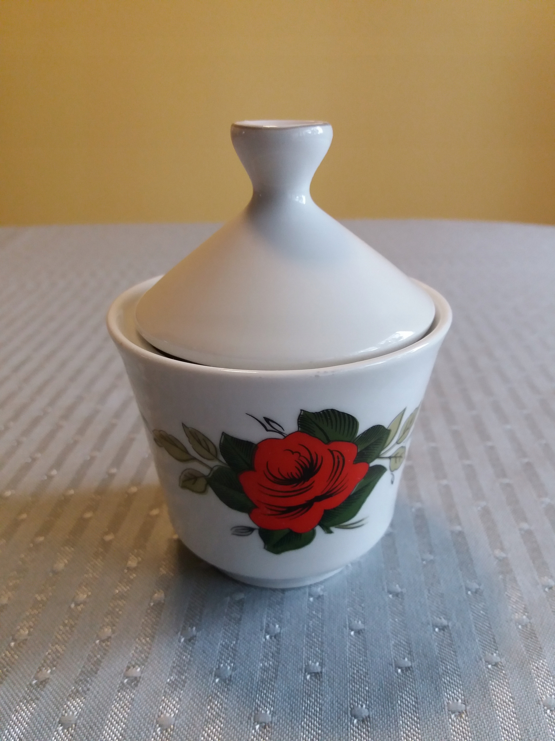 РОЗМІРИ ПОРЦЕЛЯНОВОЇ ЦУКОРНИЦІ: ВИСОТА 10,5 СМ, ДІАМЕТР ОСНОВИ 4,3 СМ.