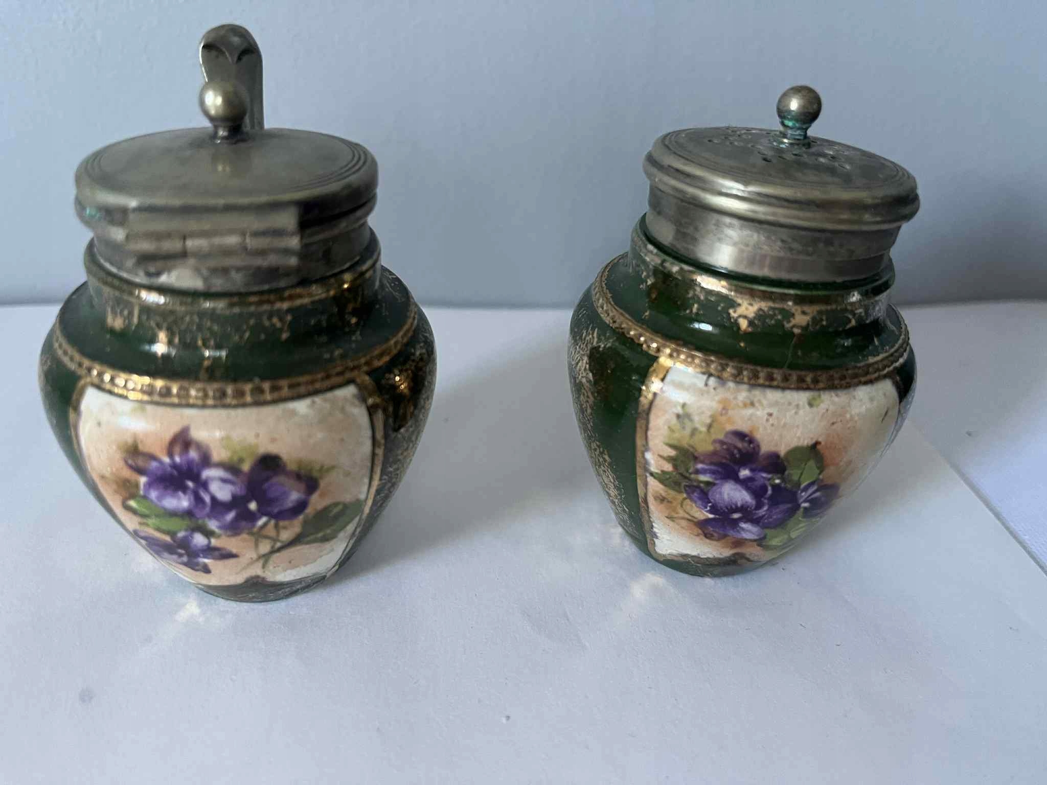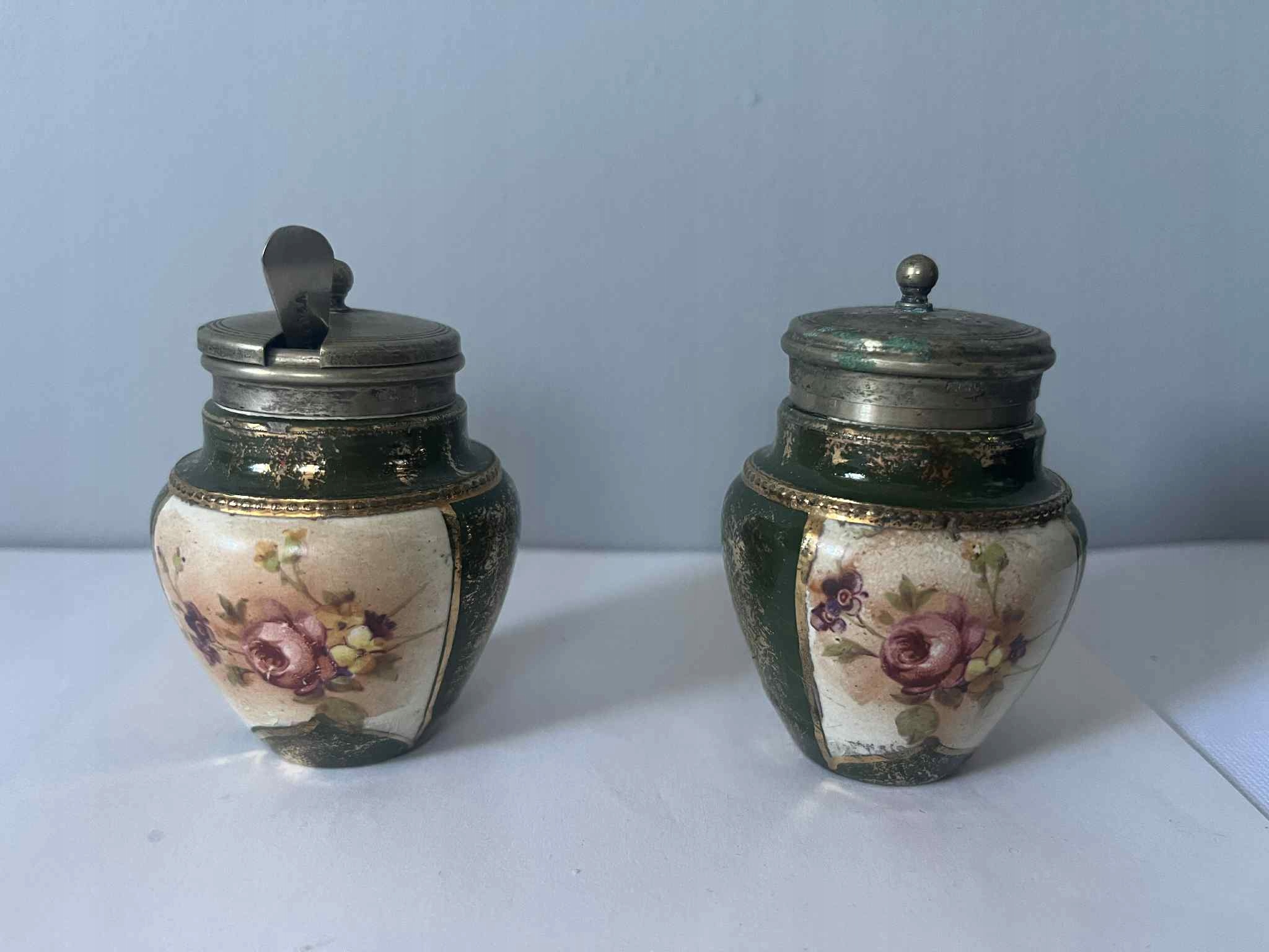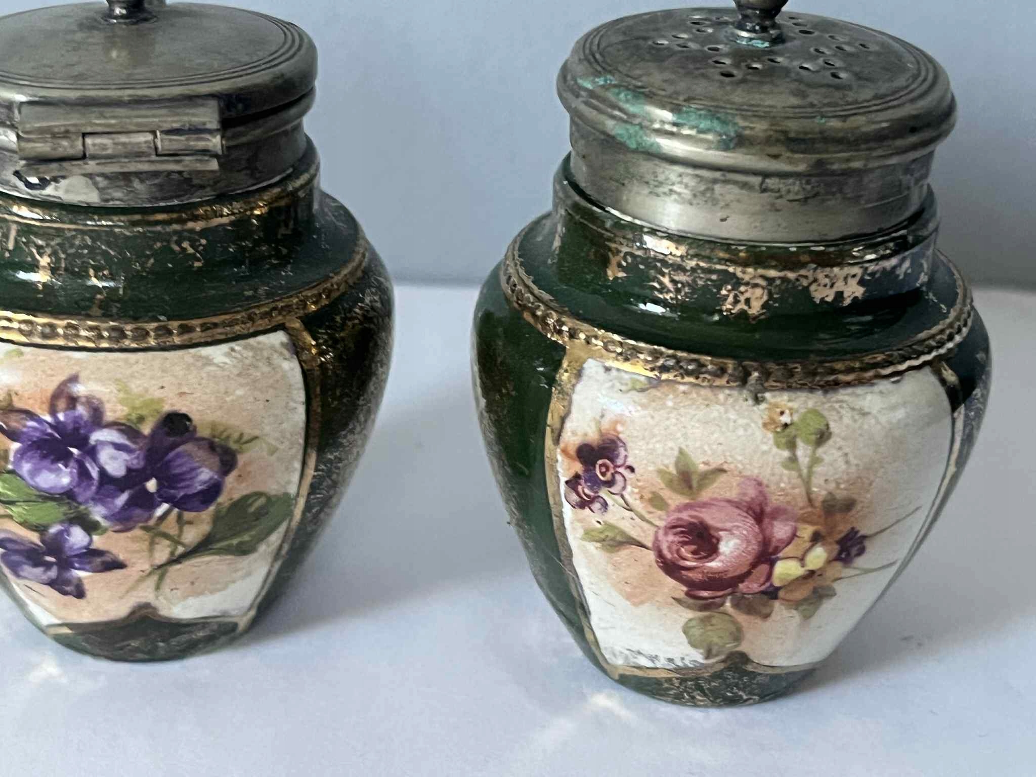 Порцелянові металеві баночки для спецій, старі порцелянові квіти EPNS