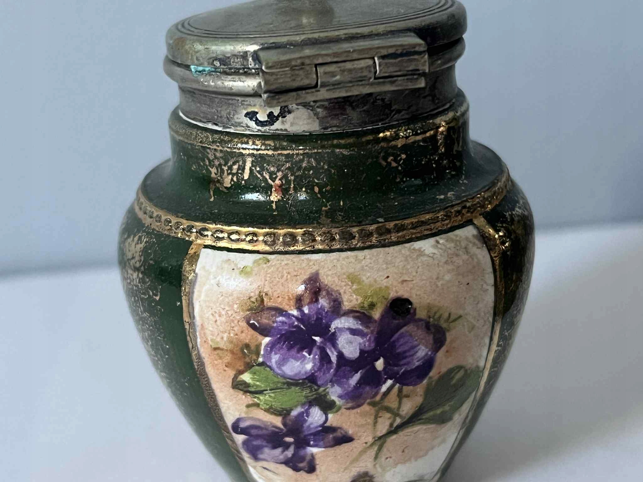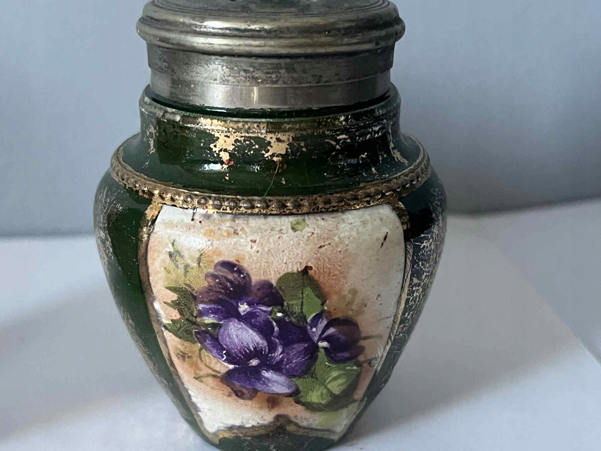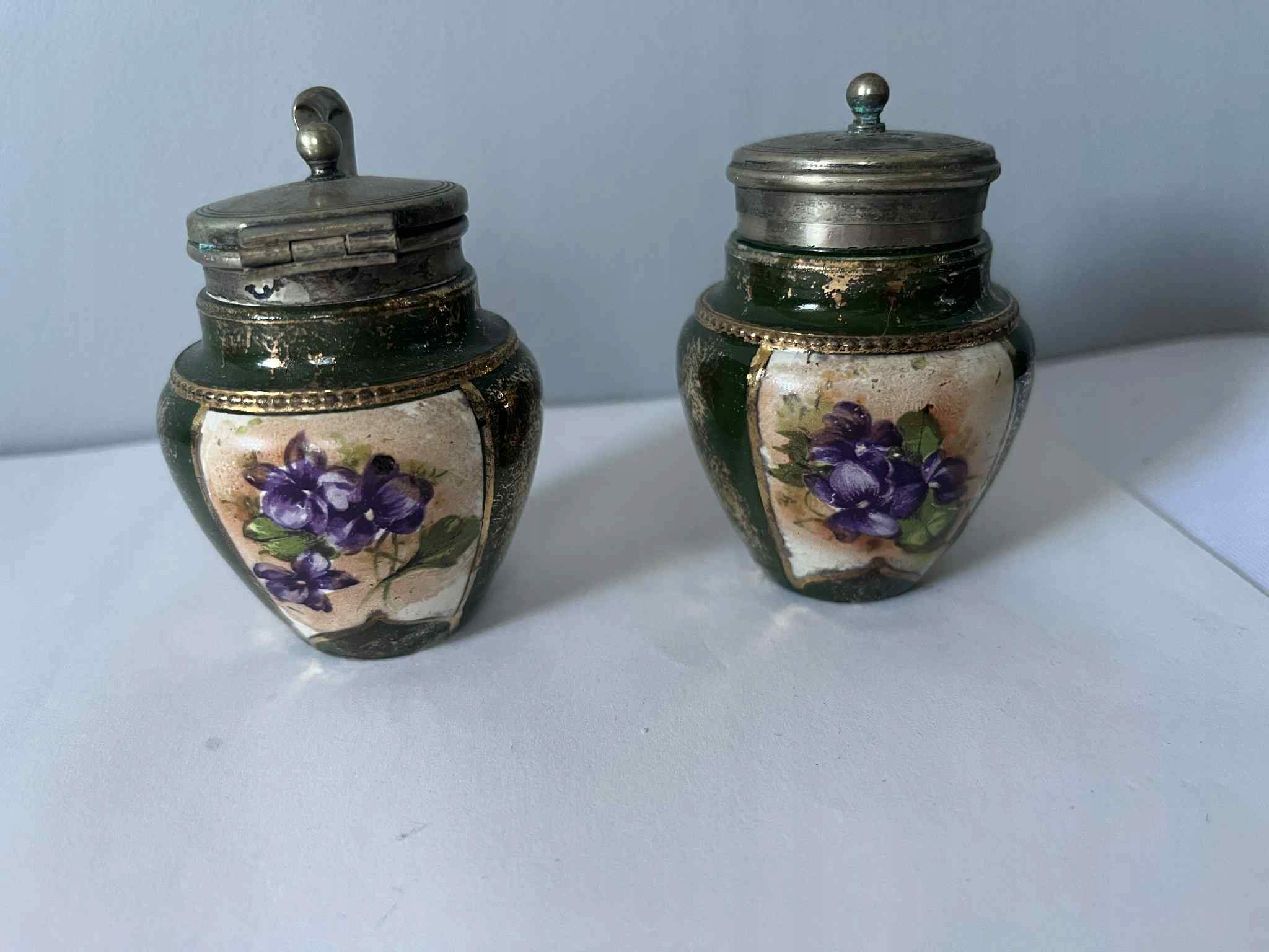 Порцелянові металеві баночки для спецій, старі порцелянові квіти EPNS
