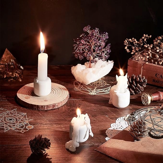 - Розмір продукту: Білий порцеляновий свічник має діаметр близько 1,30 дюйма (33 мм), товщина 1,22 дюйма (31 мм) та внутрішній діаметр 0,67 дюймів (17 мм),. Вага кожного свічника помірна, вона дуже міцна, вона не струшується, коли ви кладете свічку в вагу свічок, вона дуже підходить для виготовлення невеликих свічників.