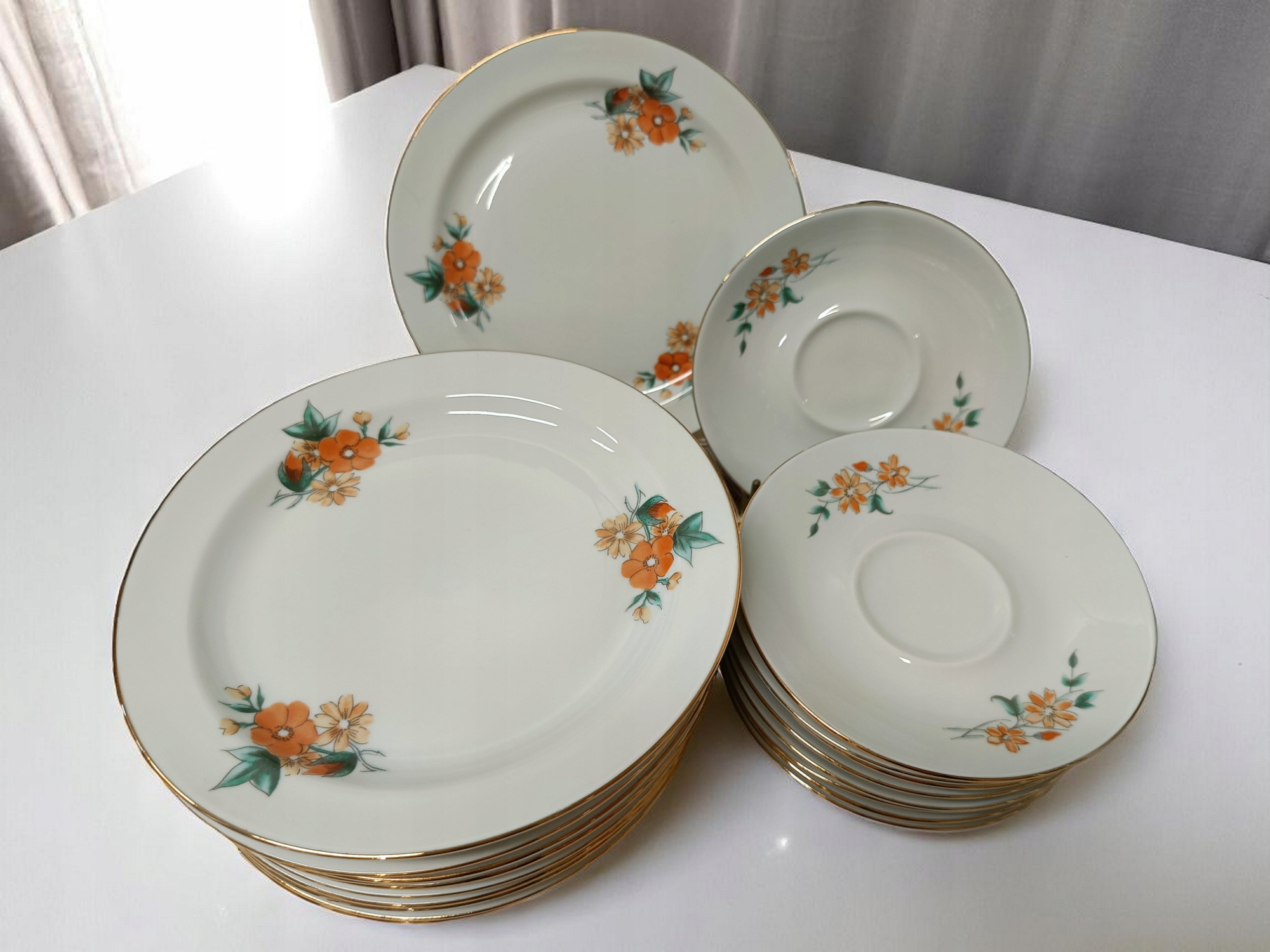 Класичний порцеляновий сервіз з Вавеля. Він характеризується ніжною білою порцеляною, прикрашеною квітковими акцентами та позолотою по краях.