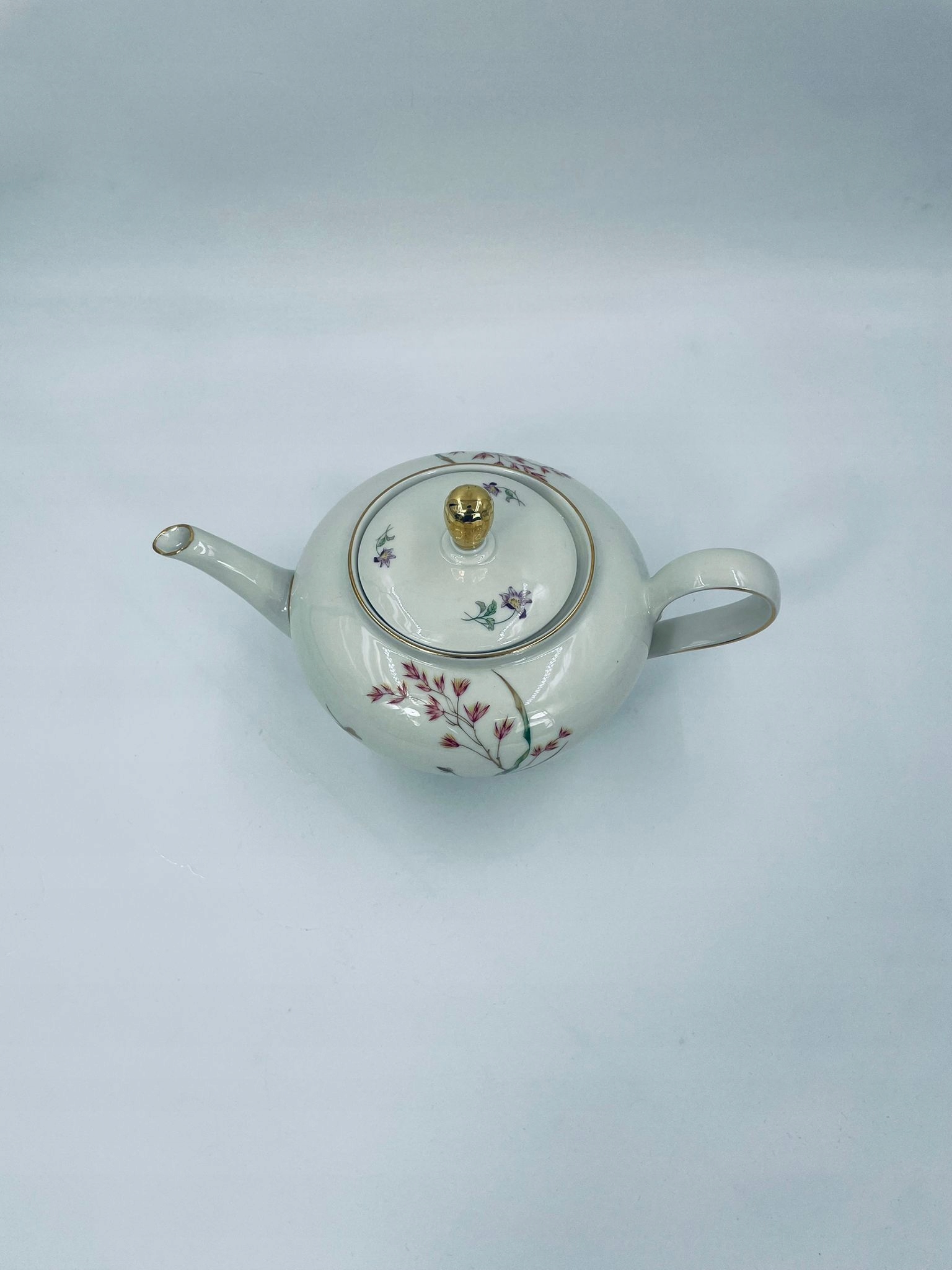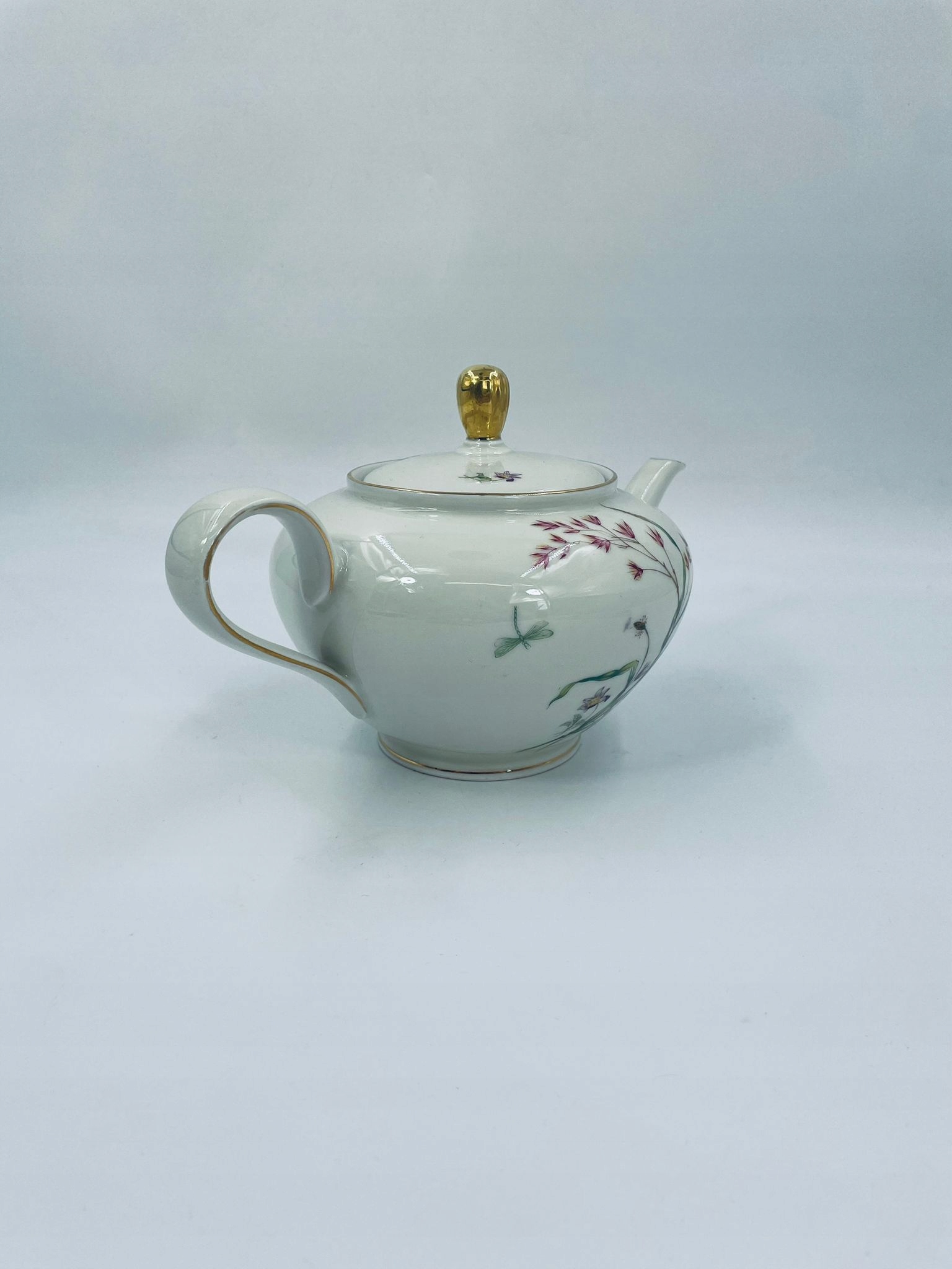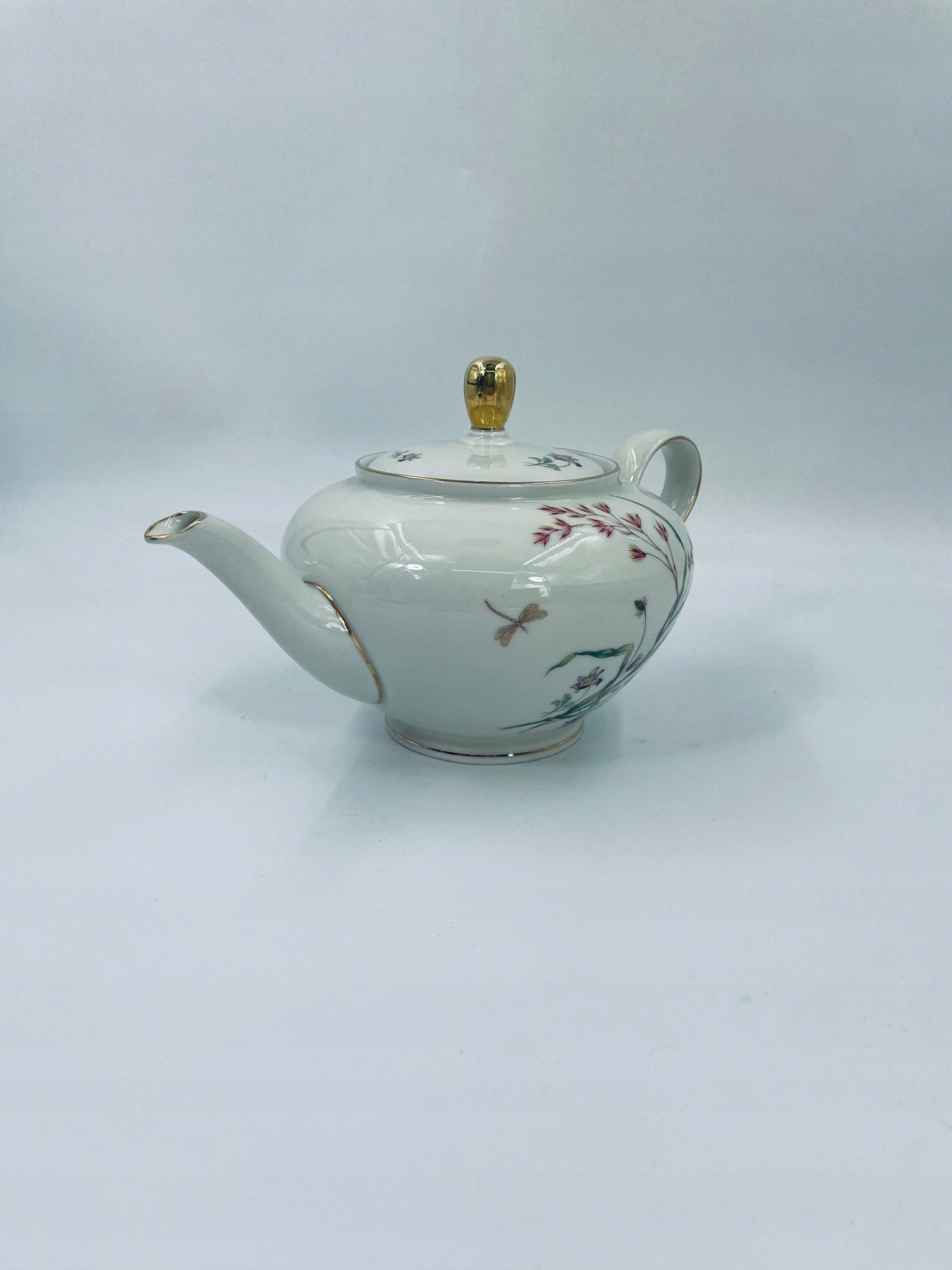Чай/ кава з Баварії, виготовлений з порцеляни Екру, прикрашений моделлю трав, квітів та комах, закінчених позолотою на рентах. Чайник має потертості в позолоті.