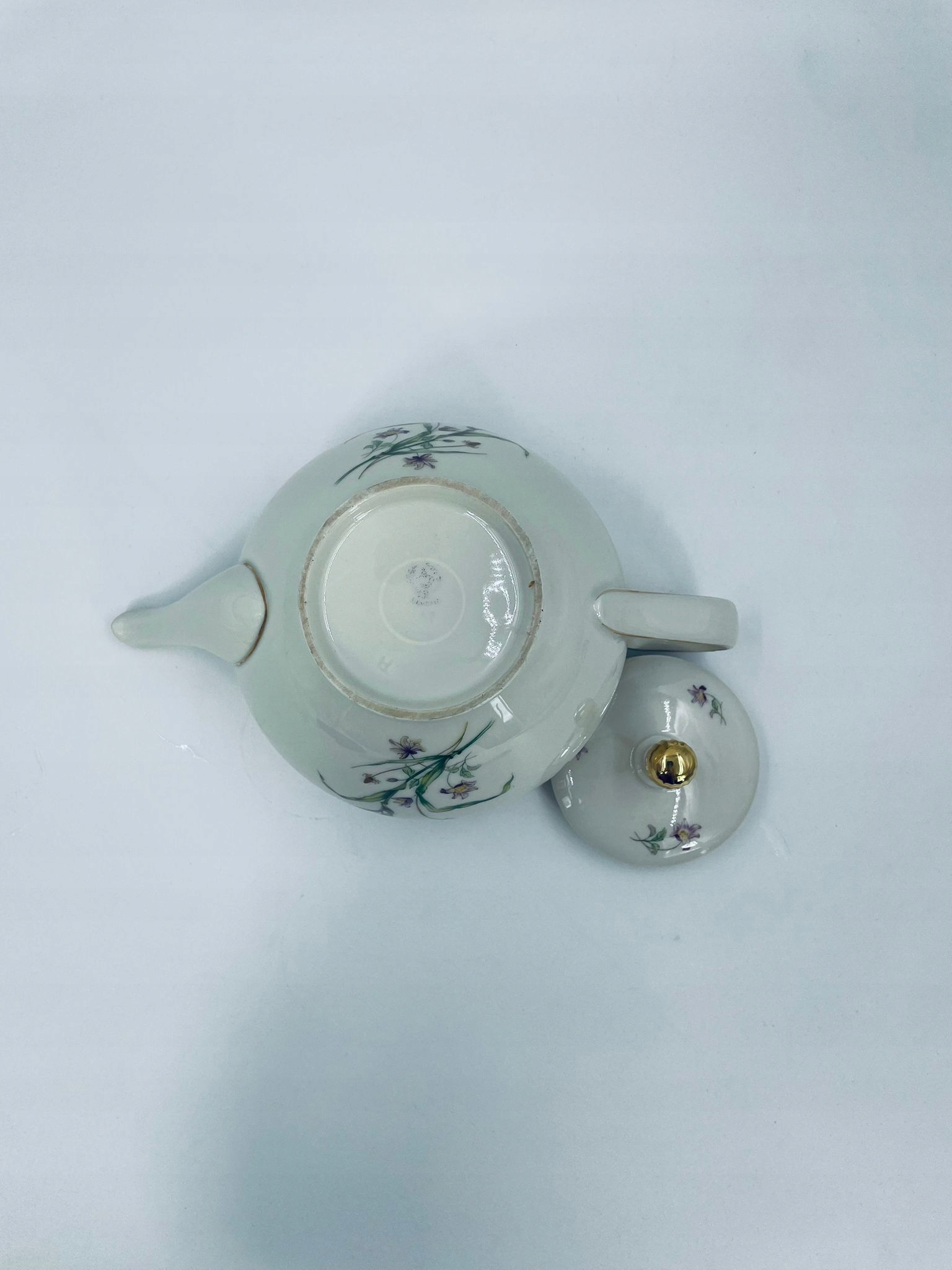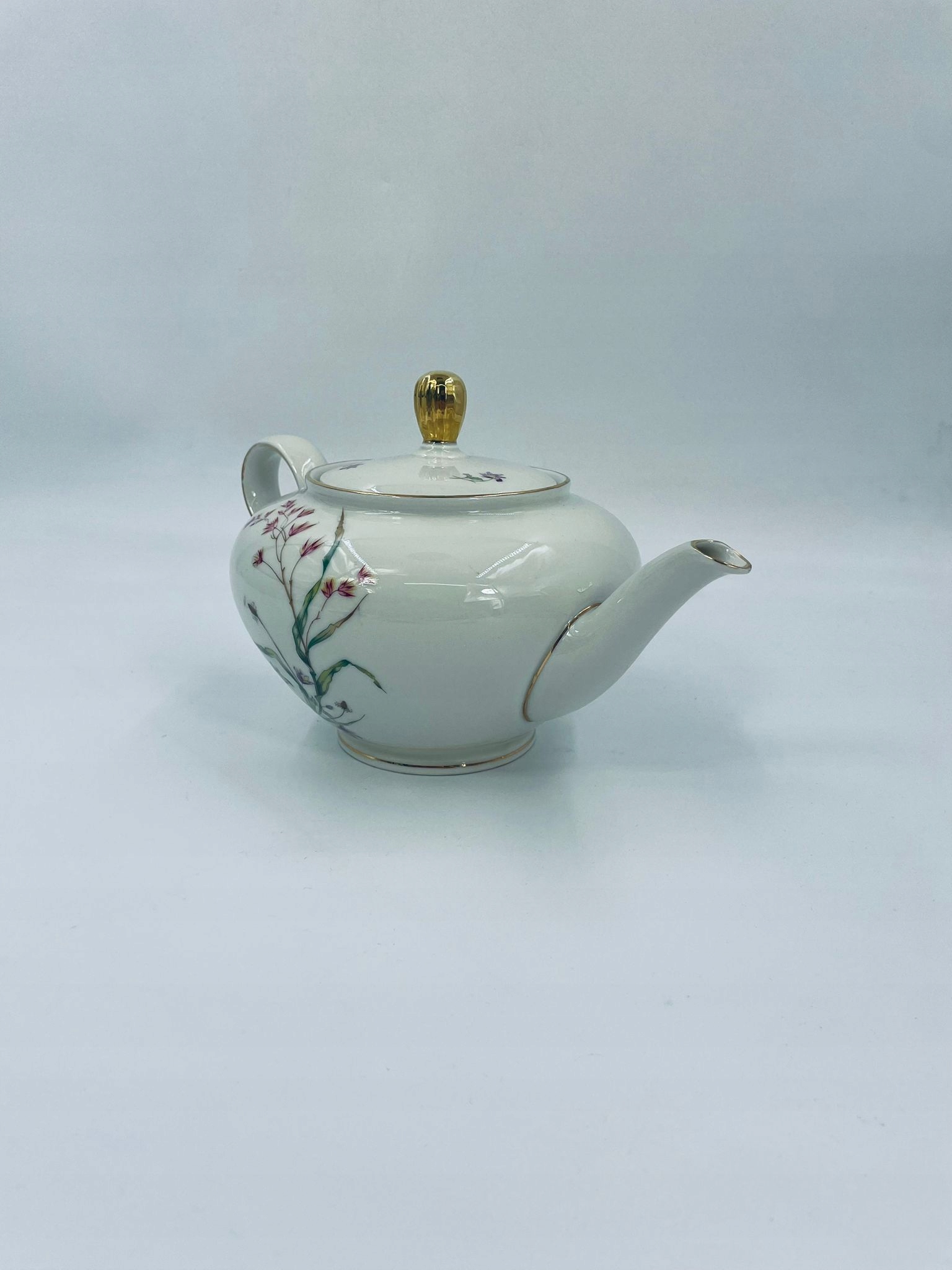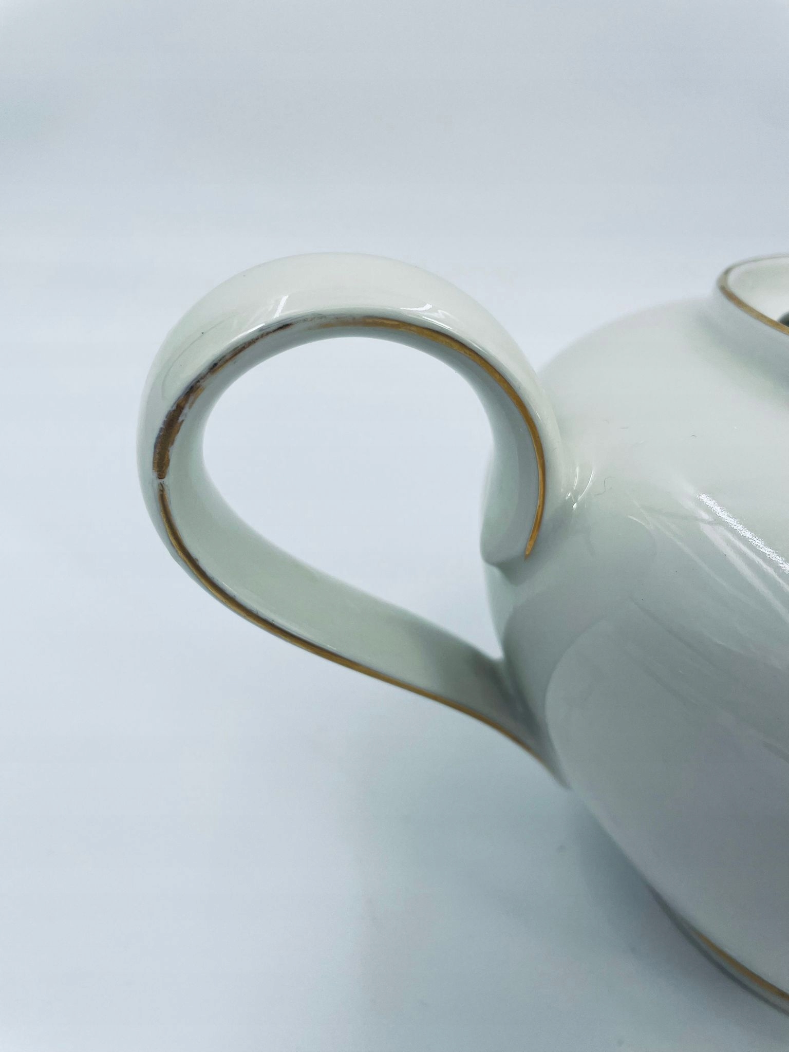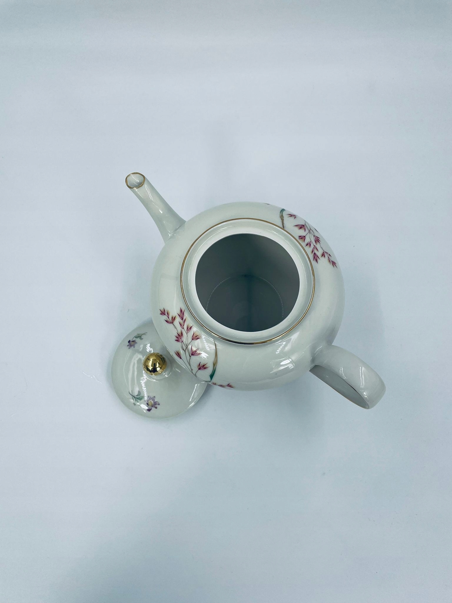 Чай/ кава з Баварії, виготовлений з порцеляни Екру, прикрашений моделлю трав, квітів та комах, закінчених позолотою на рентах. Чайник має потертості в позолоті.
