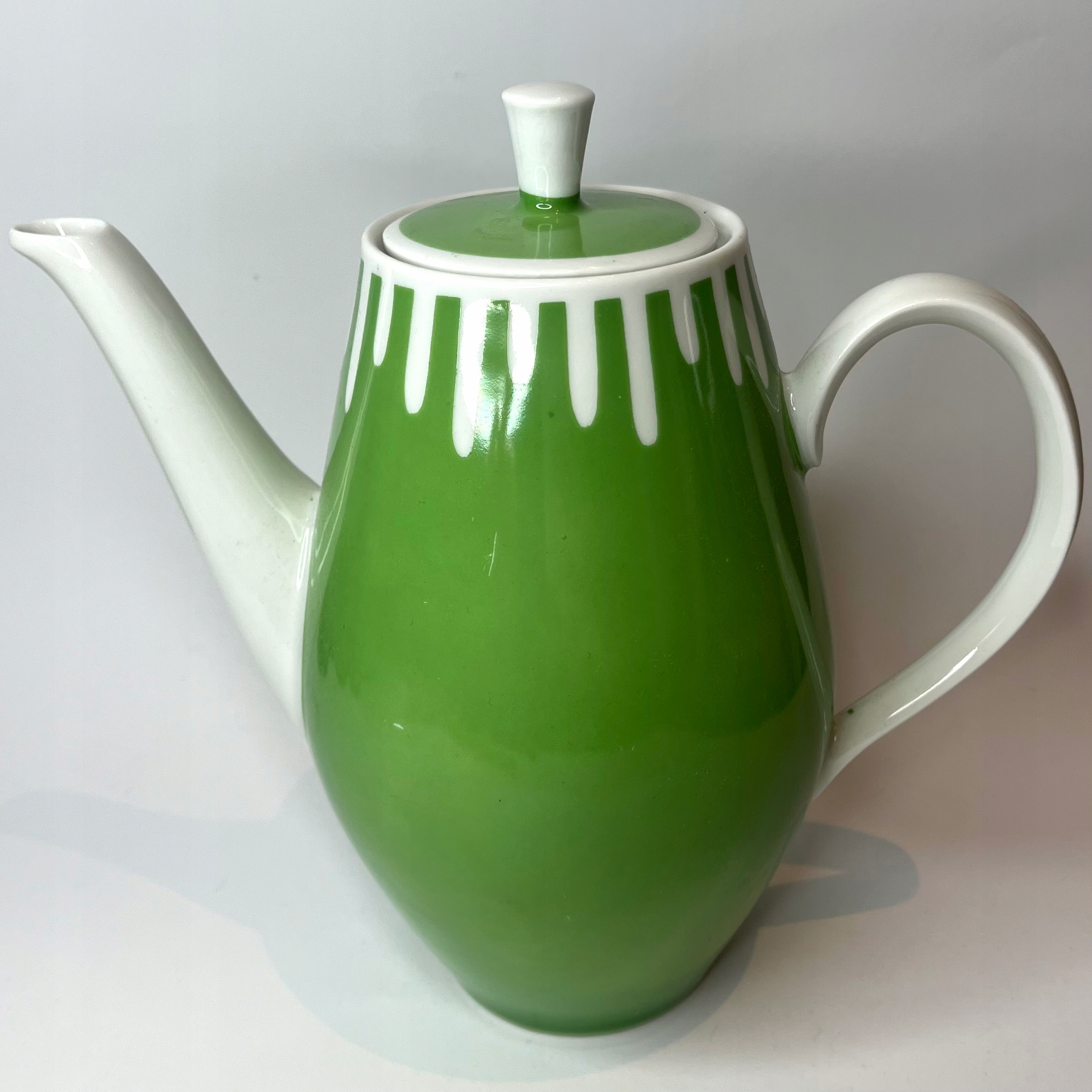Порцеляновий чайник Lichte GDR, зелений бурулька, модерністська колекція