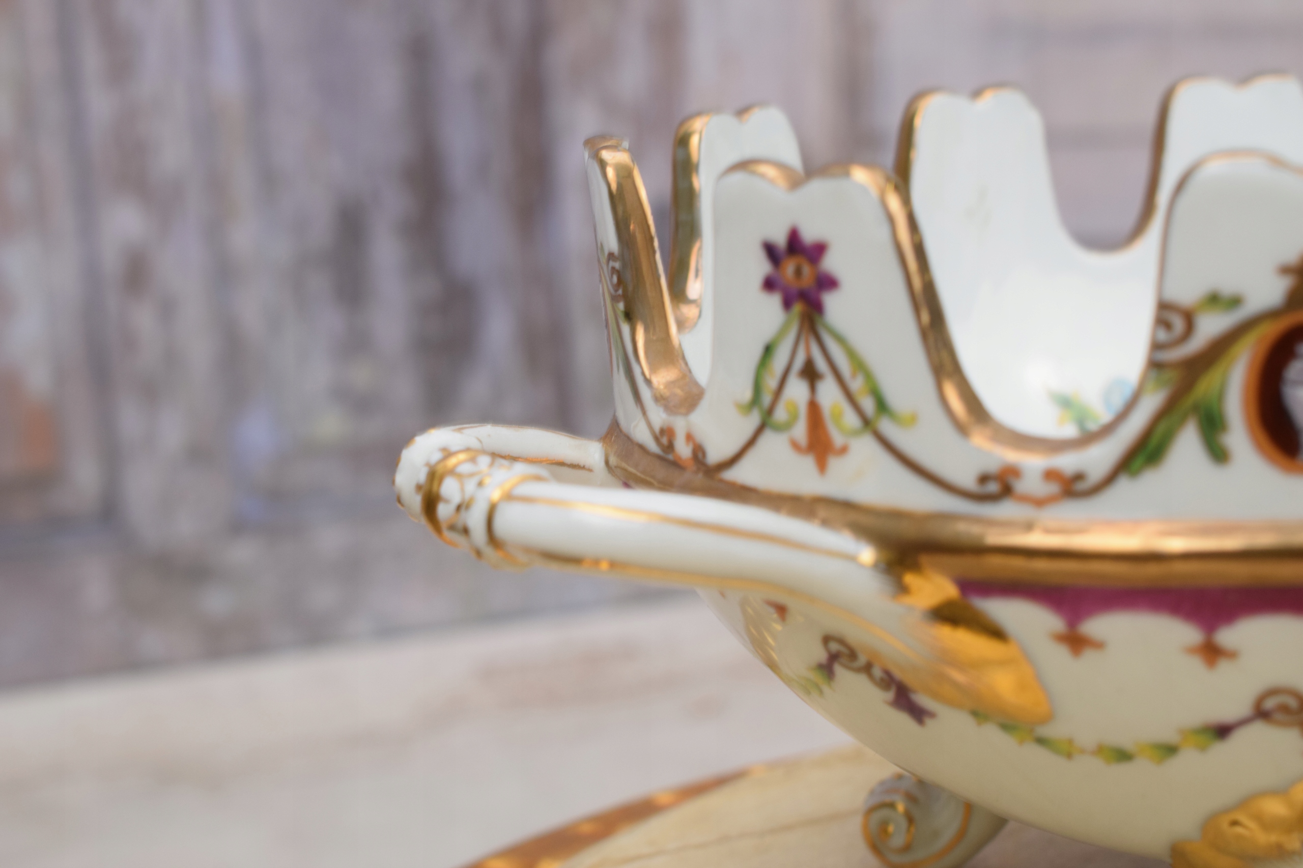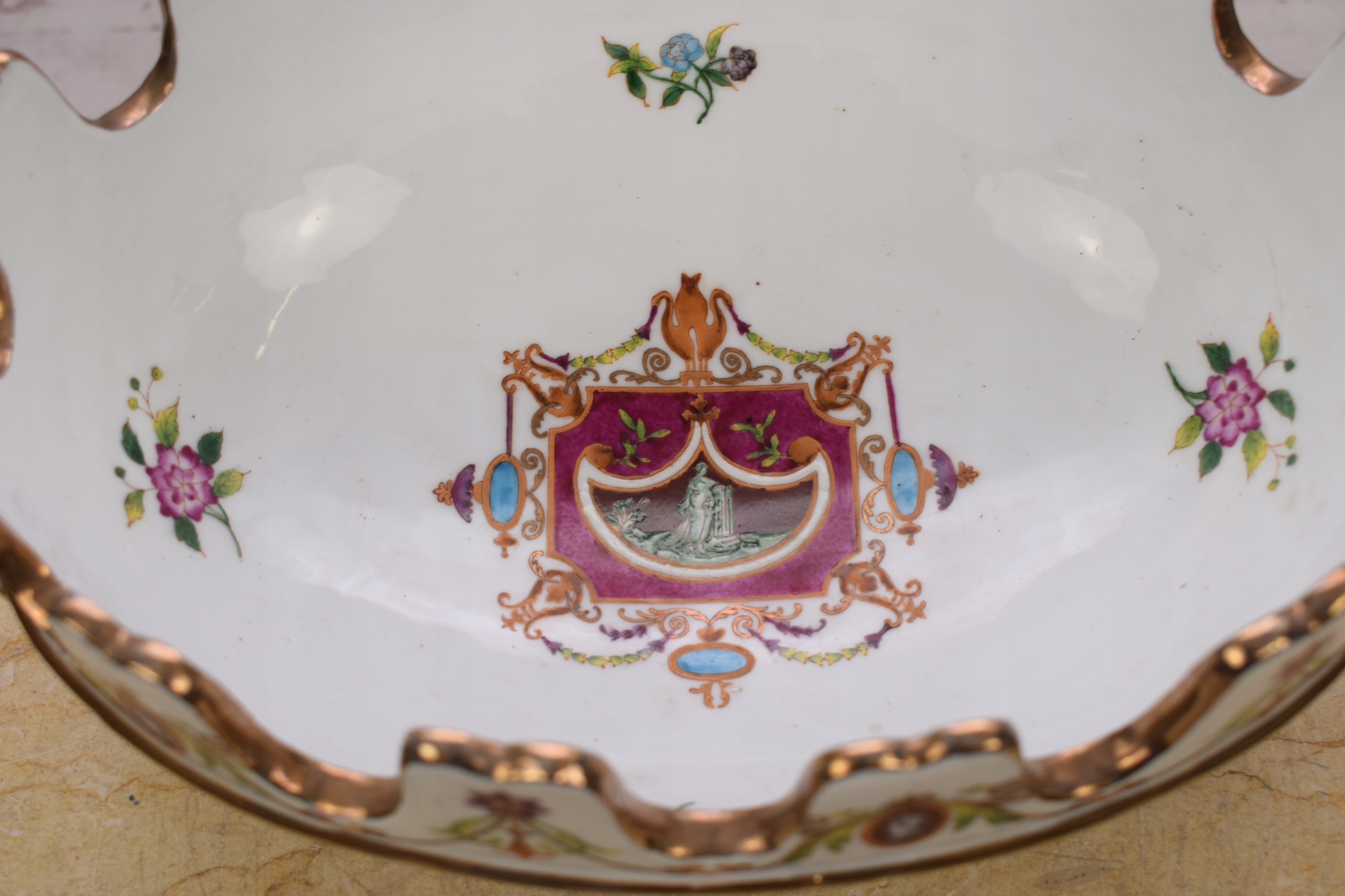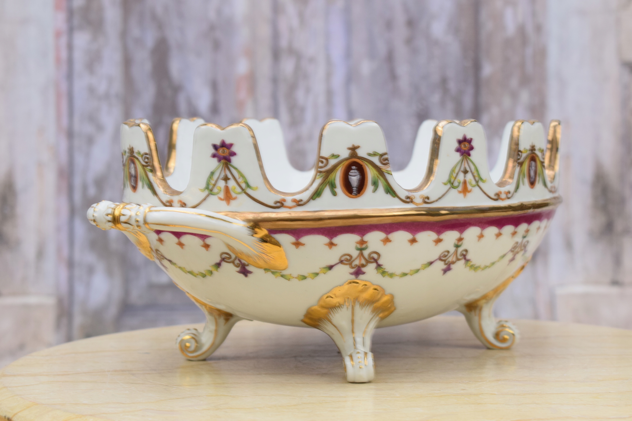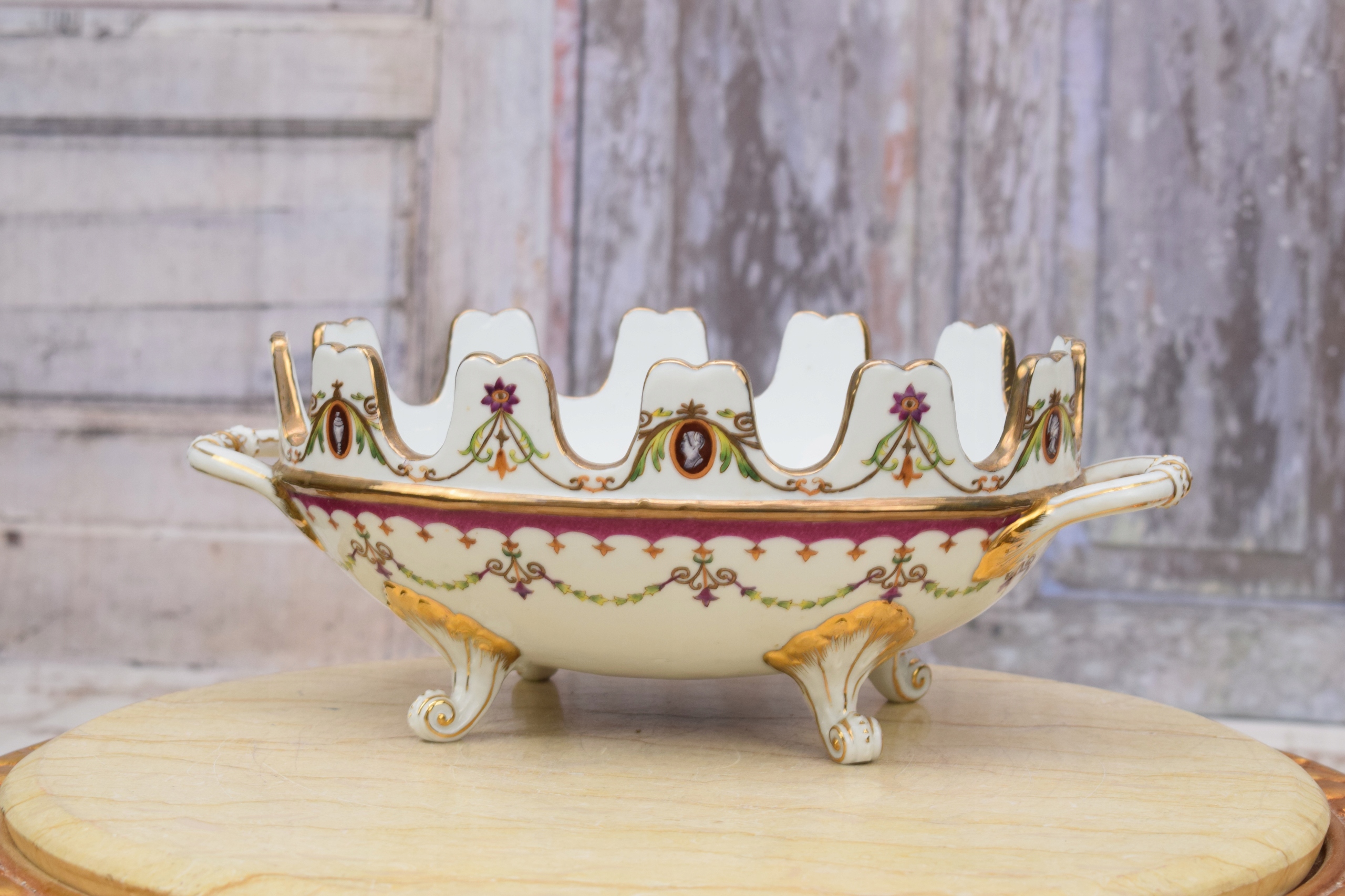 Порцеляновий кошик для тарілок, розписаний квітами - підписаний