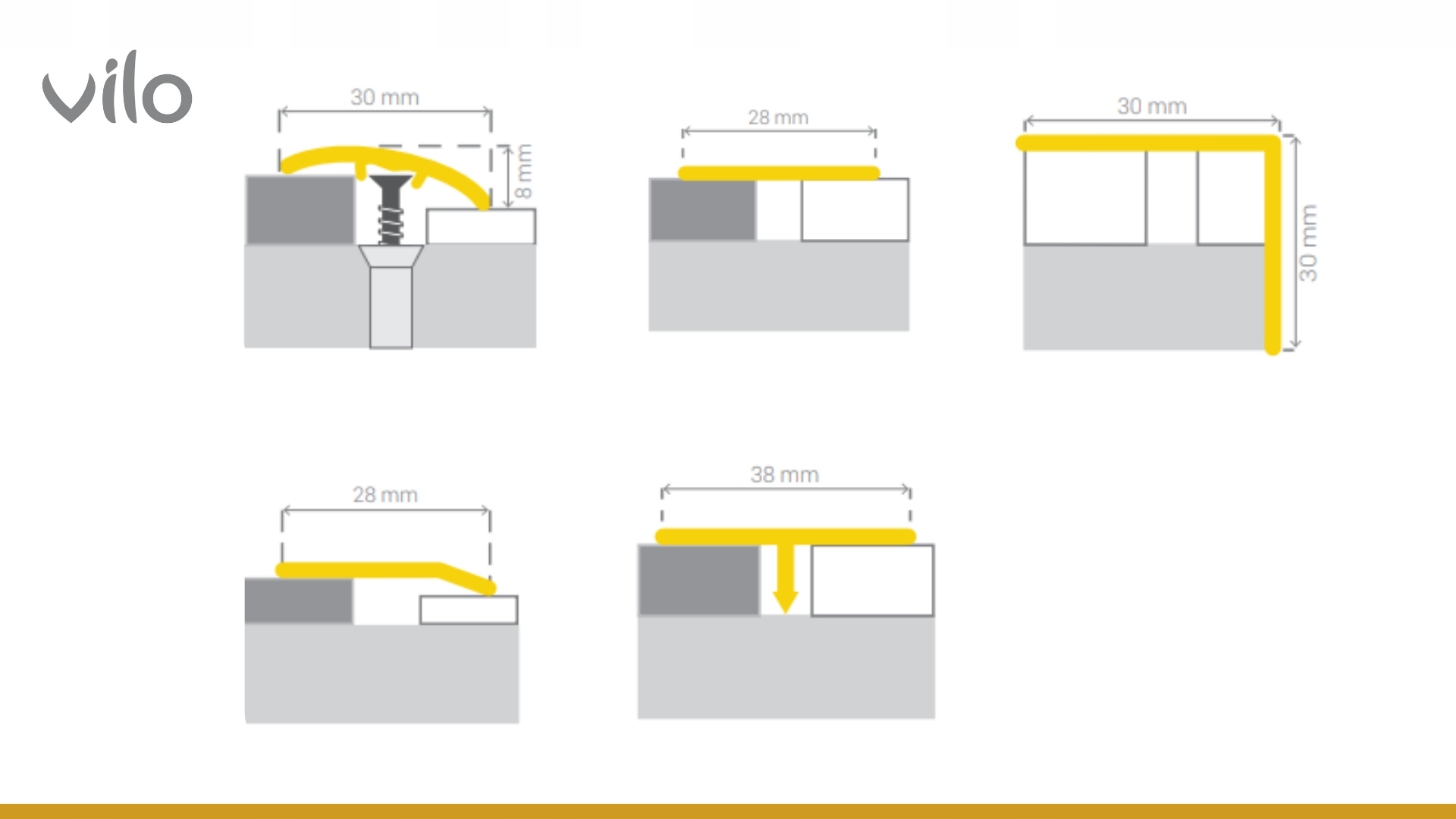 - ✅ Пороги Vilo забезпечують ідеальну обробку стиків підлоги, дозволяючи естетично та довговічно маскувати перепади рівня підлоги до 6 мм. Завдяки своїй конструкції вони ідеально вирівнюють нерівності та захищають краї панелей від пошкоджень.