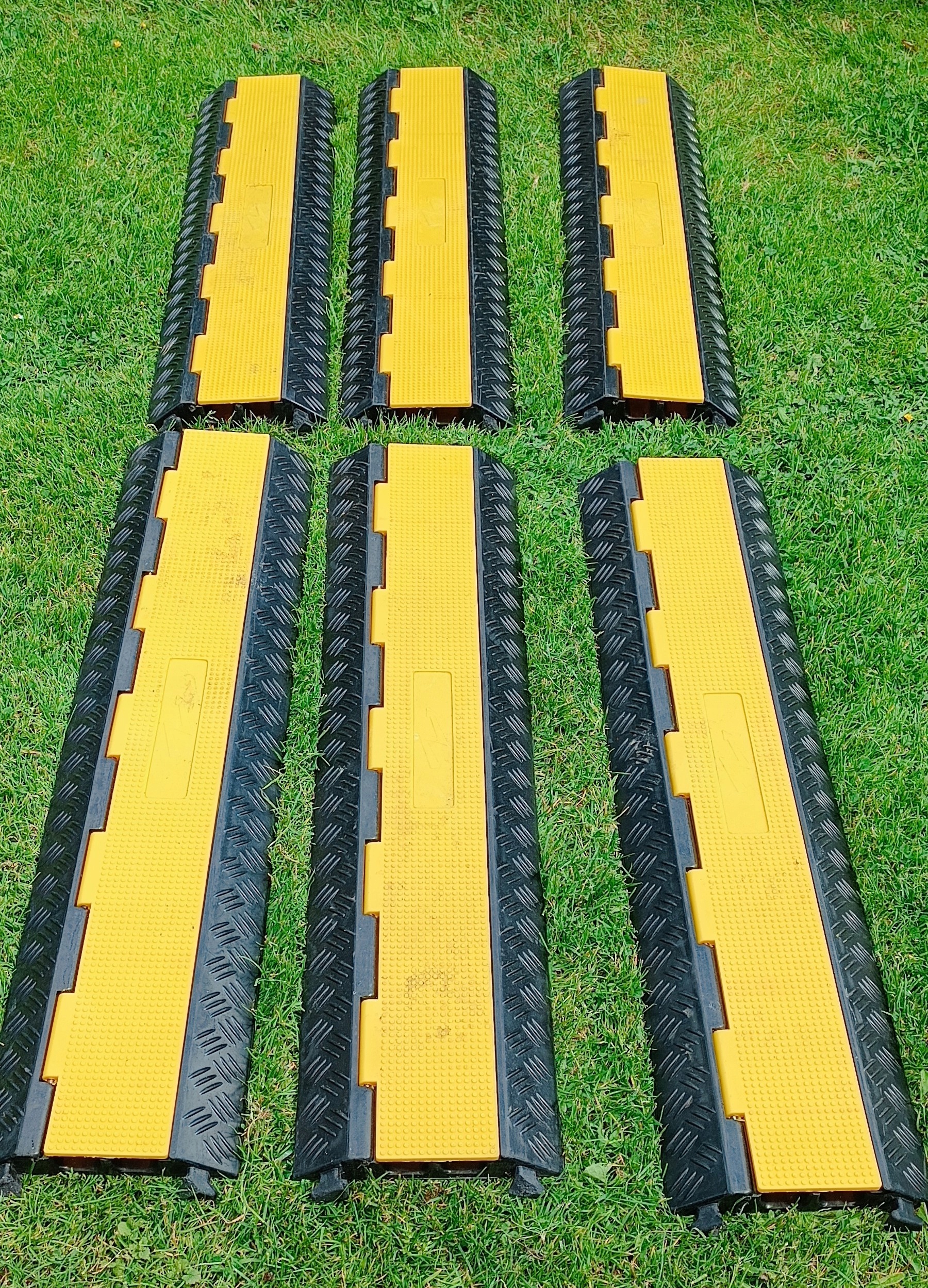 Pronomic Protector 2-100L V3 2-канальний кабельний мат 100 см з V-подібним з’єднанням Канатна платформа, допустиме навантаження до 7,5 т (дійсно для швидкості ходьби <10 км/год) З’єднання «ластівчин хвіст», довжина сегмента: 1 м +/- 1%, камери/канали: 2 Розміри рейки (Ш x В): 40 x 30 мм, петлі кришки: 5 Підходить для зовнішнього та внутрішнього використання, матеріал: гума/каучук, колір: чорний/жовтий Розміри (довжина x ширина x висота) ): 100 х 25 х 5 см, вага: 6,8 кг