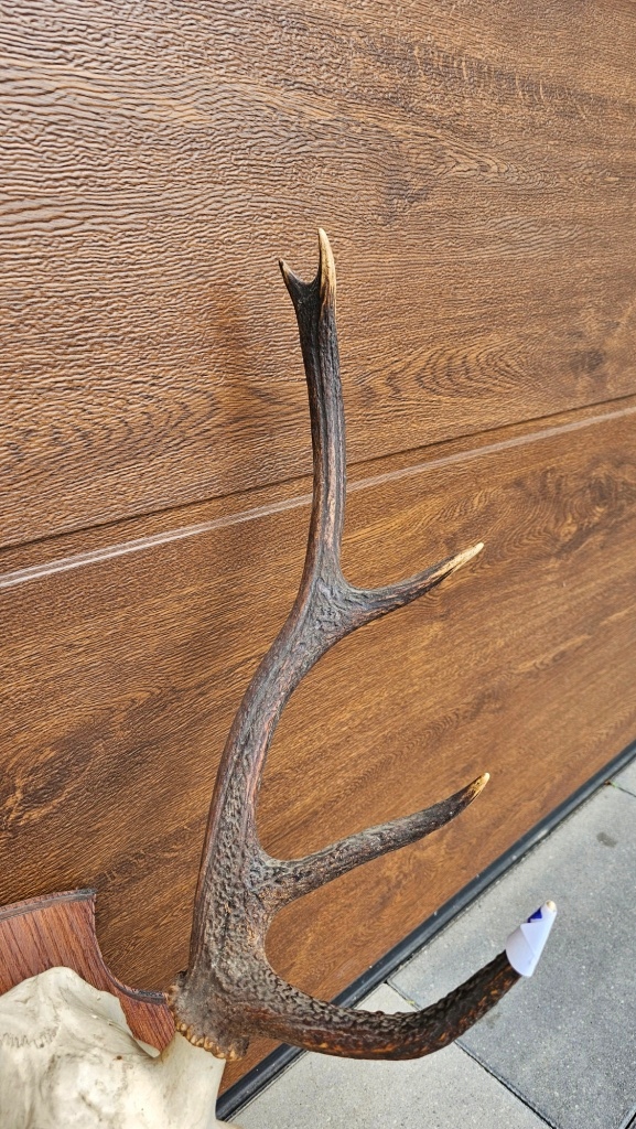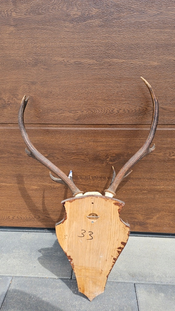 POROŻE Z CZASZKĄ NA DESCE JELEŃ BYK TROFEUM JELENIA