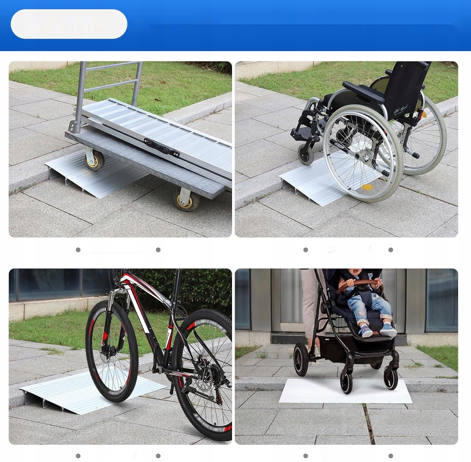 Цей поріг з алюмінію є ідеальним рішенням для людей, які використовують інвалідні візки, скутери та електричні стільці, що забезпечує легкий доступ до дверей, входів та інших перешкод. Завдяки своєму модульному дизайну, пандус можна використовувати в багатьох місцях, таких як магазини, входи до будівель або дорожні пороги.