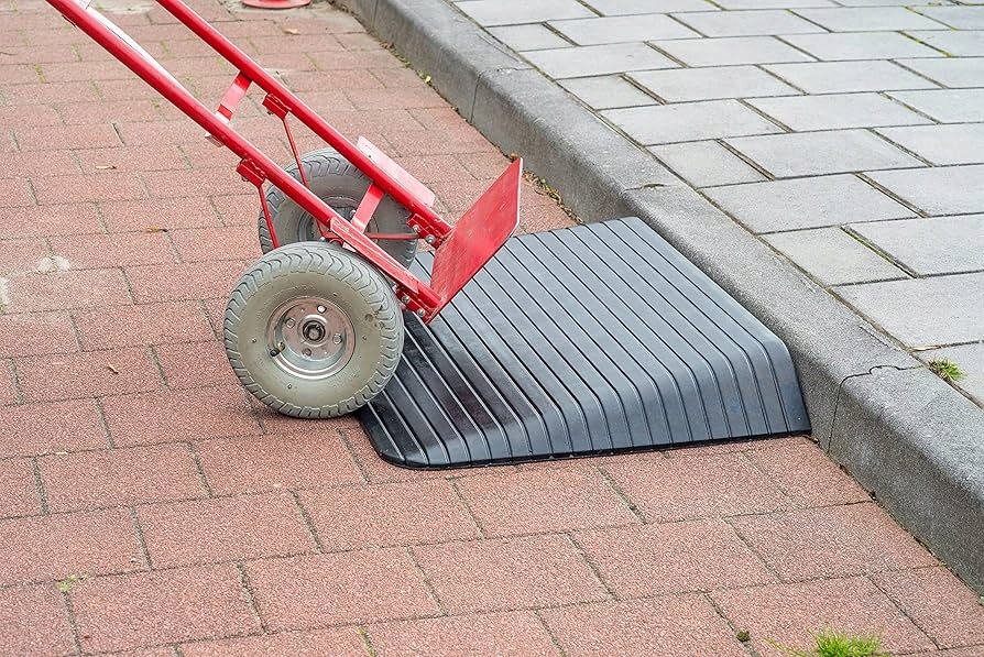 Безпека - з неслизькою поверхнею. Плавний градієнт, призначений для людей з обмеженими можливостями. Оскільки ця рампа має вантажопідйомність 1000 кг, її також можна використовувати для завантаження візків і товарів через бордюри та сходи. Цей гумовий бордюрний пандус можна залишити на вулиці.