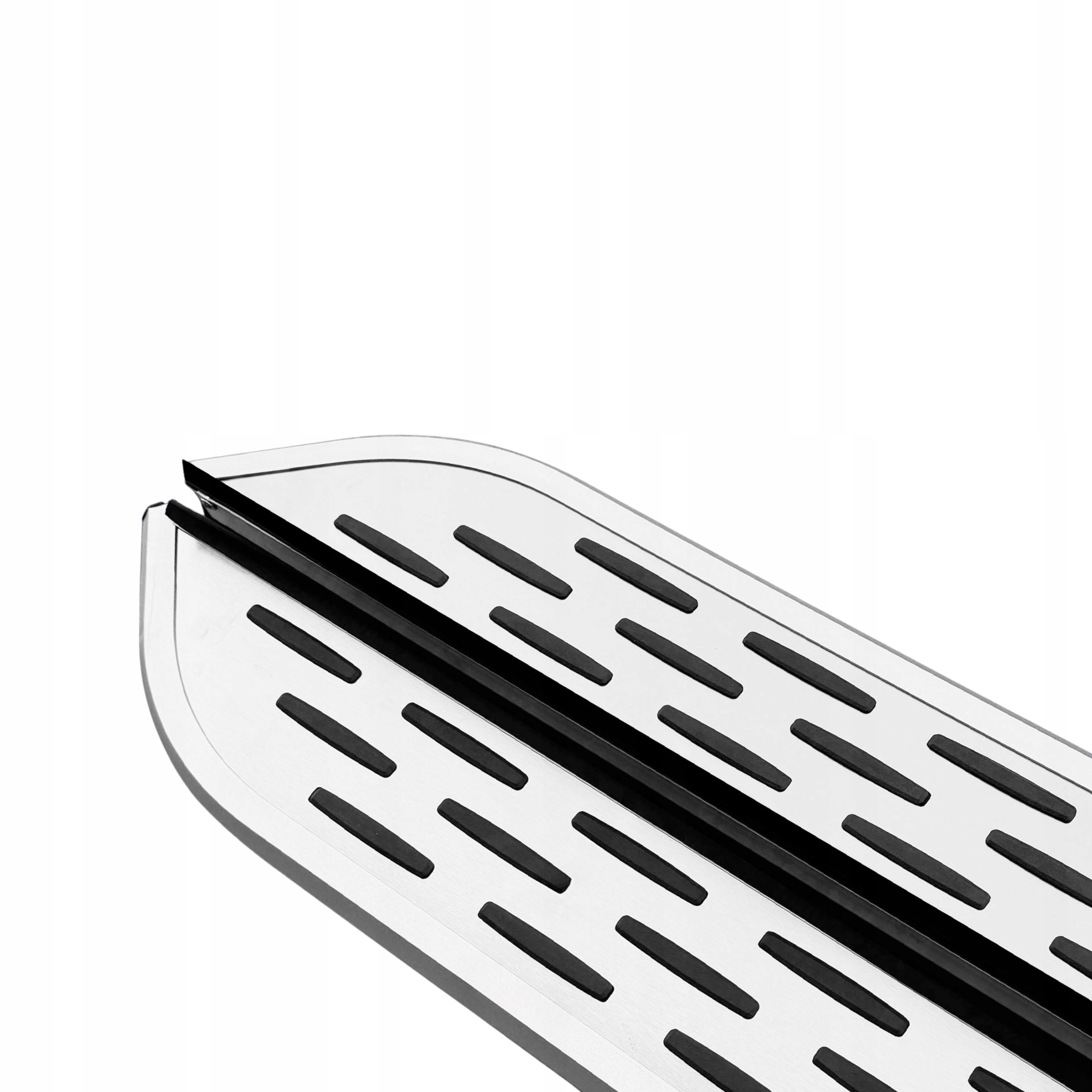 Завдяки аеродинамічній конструкції та жорсткому профілю, виготовленим з алюмінію, пороги забезпечують максимальну вантажопідйомність мінімум 100 кг. Вони не бояться погодних умов, хімії або дорожньої солі, а поверхня, що не належить, забезпечує додаткову безпеку.