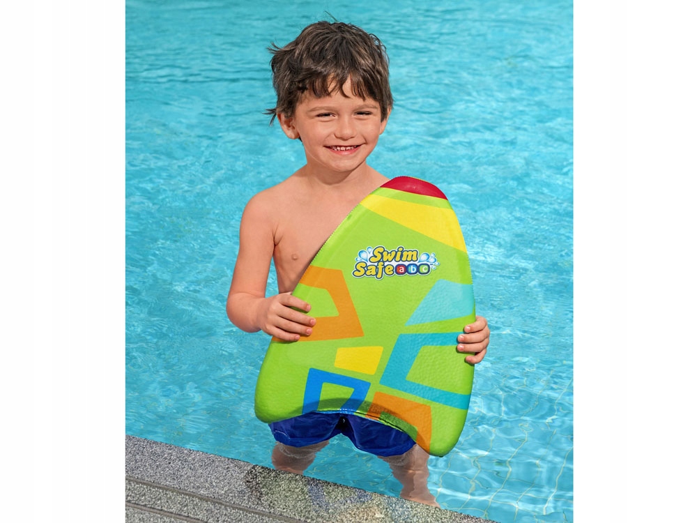 Дошка розміром 42x32x35 см має ергономічну форму. Він виготовлений з міцної піни з чудовою плавучістю. Крім того, він покритий тканиною з кольоровою графікою, щоб забезпечити зручне захоплення та запобігти вислизанню з рук. Підходить для дітей віком від 3 до 6 років. Він не займає багато місця та не вимагає насоса, а це означає, що ви можете брати його куди завгодно.