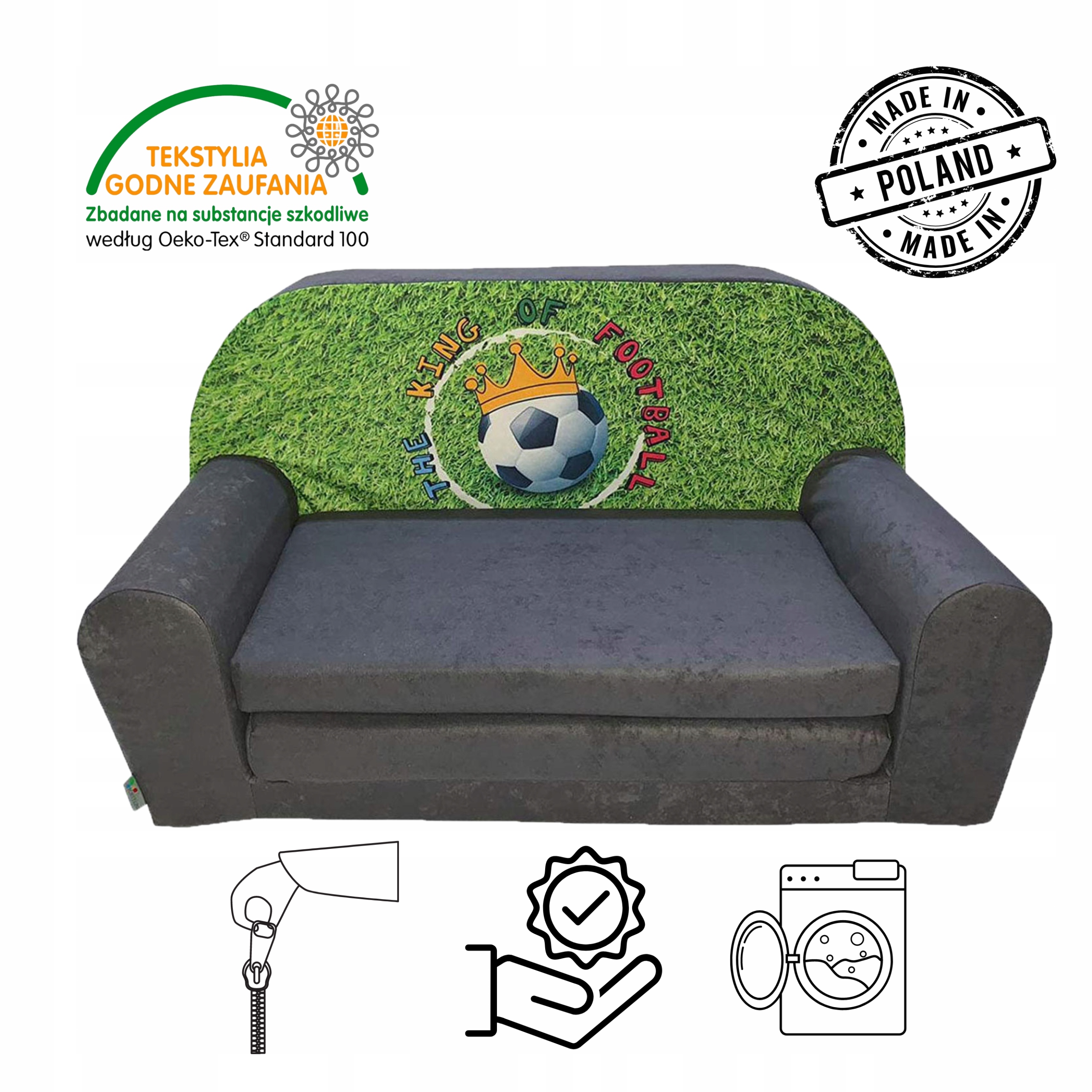 Маленький футбольний фанат заслуговує на унікальне місце для відпочинку. Сірий міні-диван із мотивом м’яча — ідеальний вибір, який поєднує в собі спортивний стиль і комфорт.