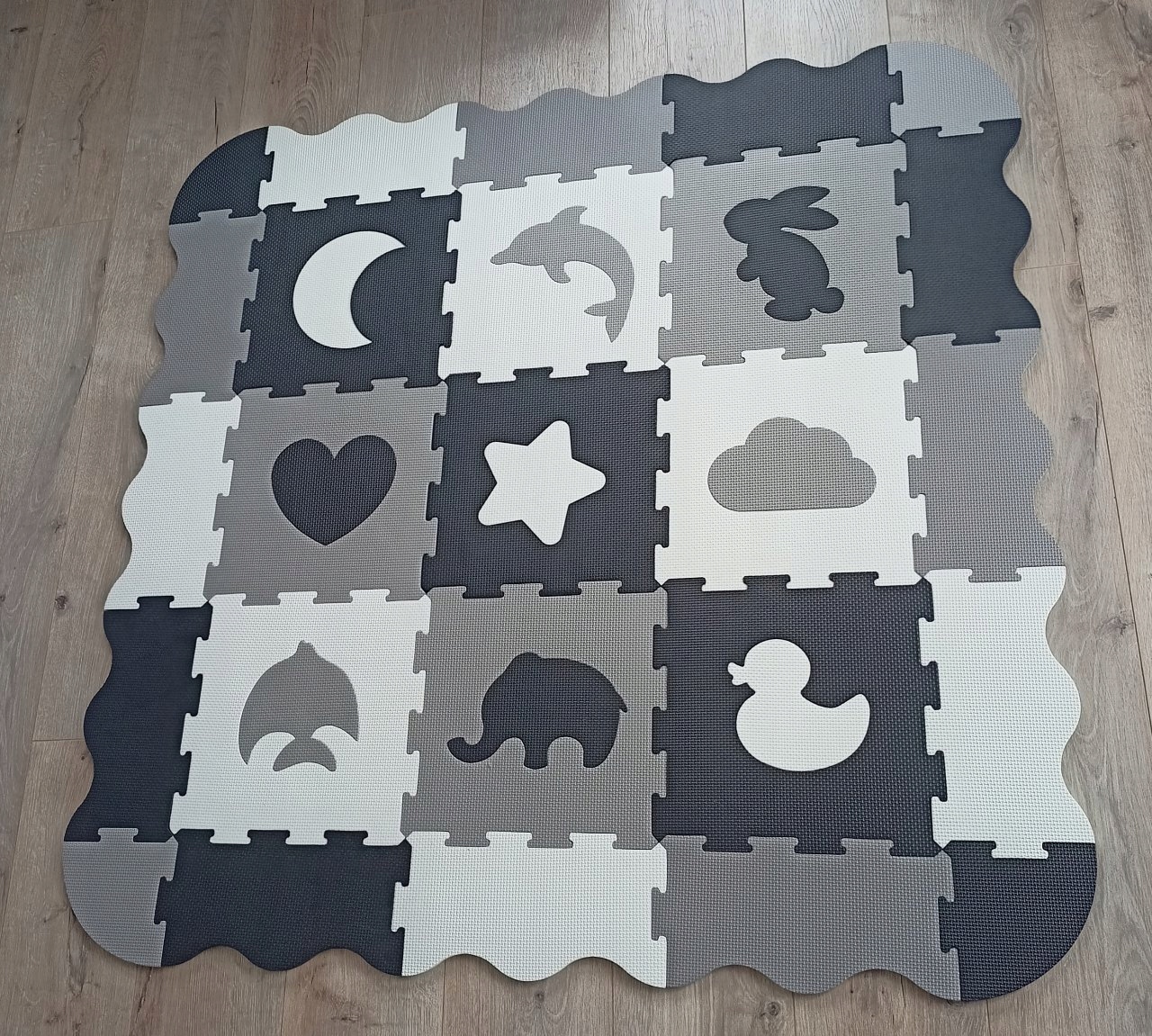 - 9 пазлів 32,5 см х 32,5 см - різних кольорів (сірий, білий або чорний) li>