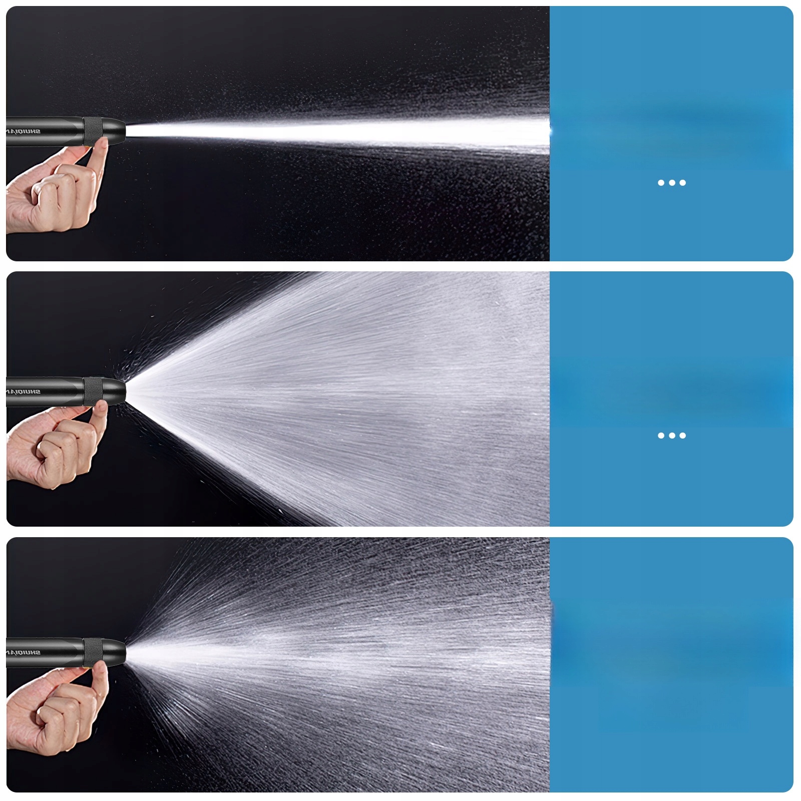 🌈Режим струменю призначений для видалення твердих плями, режим розбризкування призначений для очищення великої площі, а режим душу призначений для змочування автомобіля та поливу рослин.