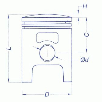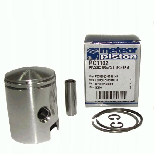 метеорні поршні для двох -ударних двигунів виконуються методом лиття алюмінієвого сплаву з 18 % вмістом кремнію. Високий вміст кремнію забезпечує незначне розширення поршня при високих температурах, що гарантує довгу та без проблем роботи поршня в двигуні навіть у важких умовах. Поршневі виливки нагріваються при високих температурах. Шістдесят років досвіду виробництва поршнів дозволили виробляти легкі поршні, з зносом, з невеликим показником тертя. Для того, щоб зменшити тертя та продовжити життя поршня, поршневе пальто у виробничому процесі розпорошується шаром молібдену. Кільця поршня походять від японського виробника або італійської компанії Caber.