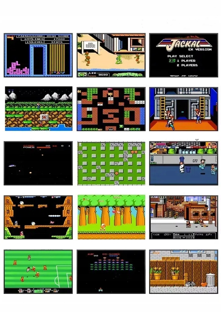 - ➡ У консолі є 500 ігрових ігор, серед яких є найпопулярніші з старих часів, включаючи Маріо, Тетріс, Контра, Пак, Пінбол та багато інших. Ця величезна кількість ігор змусить усіх знайти щось для себе незалежно від віку