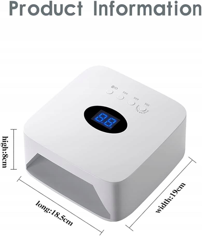Ультрафіолетова світлодіодна лампа для нігтів із вбудованою акумуляторною батареєю, що перезаряджається, може використовуватися тривалий час і під час заряджання. 4 таймери та інфрачервоний датчик Лампа для нігтів забезпечує режим слабкого нагрівання 10 с 30 с 60 с 99 с і час буде відображатися на великому РК-екрані. Автоматичний датчик Наша лампа має автоматичний ручний інфрачервоний датчик. Він запускається автоматично, коли руки входять, і автоматично вимикається, коли руки відходять або таймер закінчується. Висока потужність і швидке висихання Висока потужність 54 Вт для швидкого висихання, кульки лампи з подвійною оптичною довжиною хвилі 365 нм і 405 нм допомагають рівномірно та ефективно затвердіти гель-лак для нігтів. Подвійний USB-роз’єм дозволяє заряджати ваш телефон і полірувальник нігтів. Можна використовувати з різними пристроями для екстреної допомоги 5 В. Попрощайтеся зі шнуром живлення та блоком живлення.