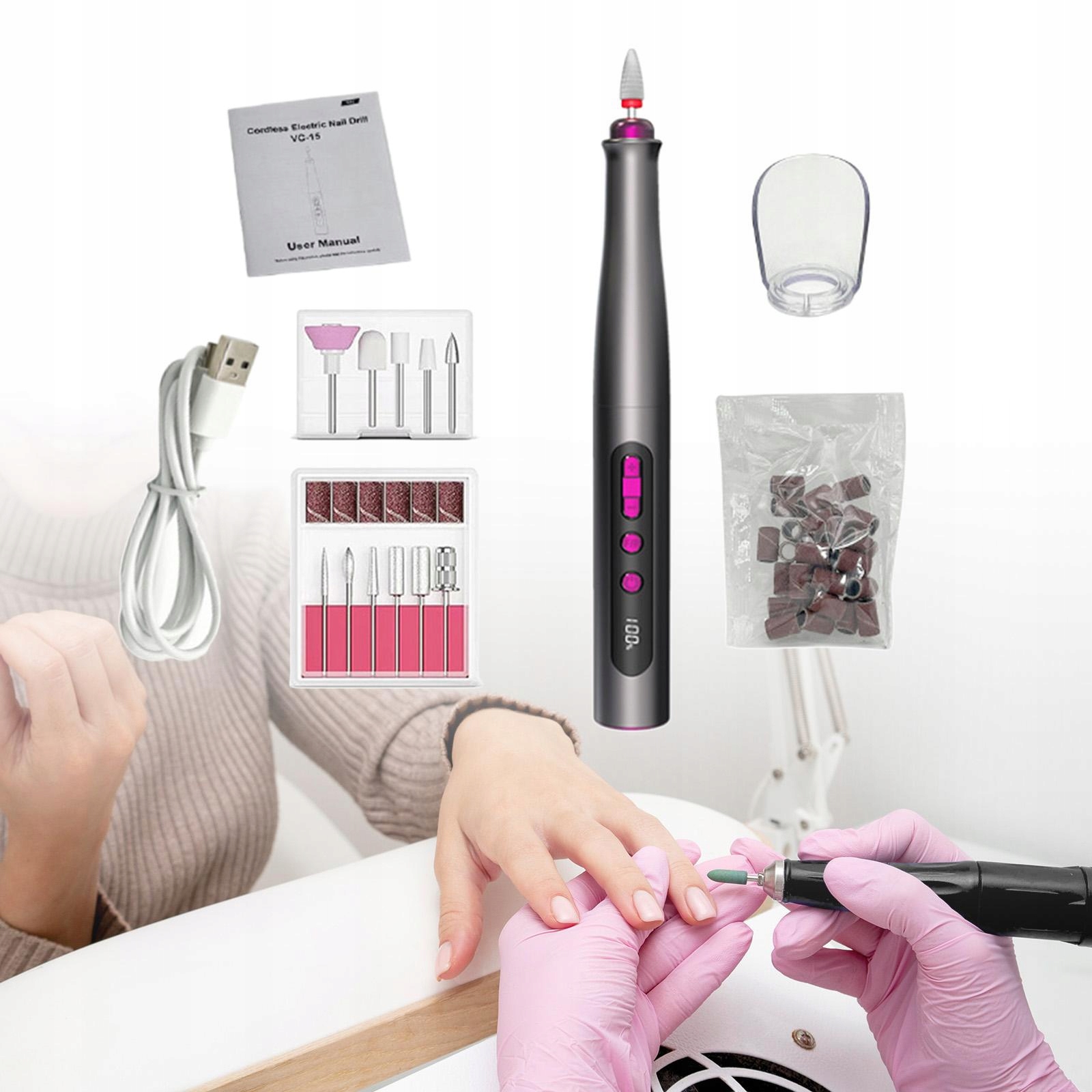 [usb]: elektryczne narzędzie do manicure i pedicure do paznokci i paznokci u nóg, usb, dlaugi czas. [Застосування]: Файл нігтів із шліфувальною машиною підходить для використання в домашніх умовах та вітальні, підходить для професіоналів, початківців та ентузіастів декорування нігтів.