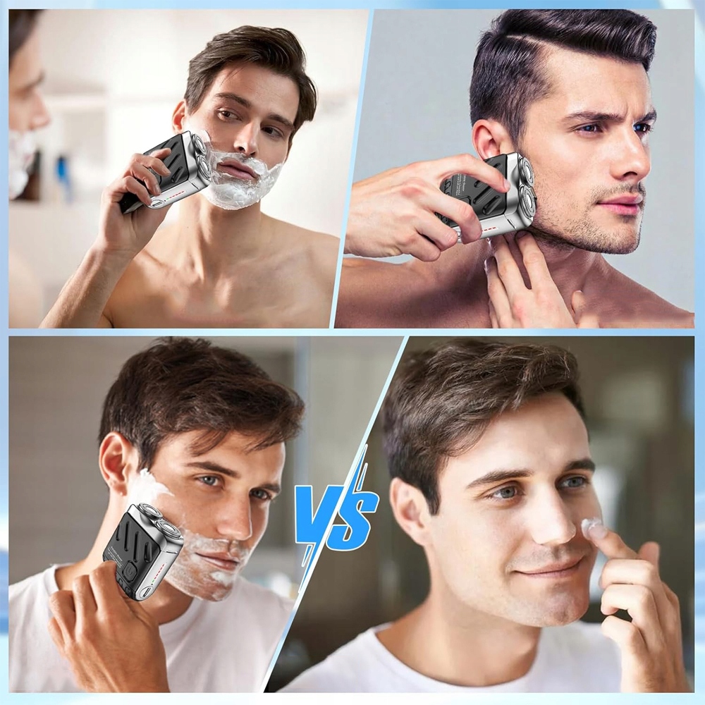 2 плаваючі головки з надтонкими сітками та самошліфувальними лезами! 🔄 Вони автоматично адаптуються до контурів обличчя, гарантуючи гладке гоління без подразнень.