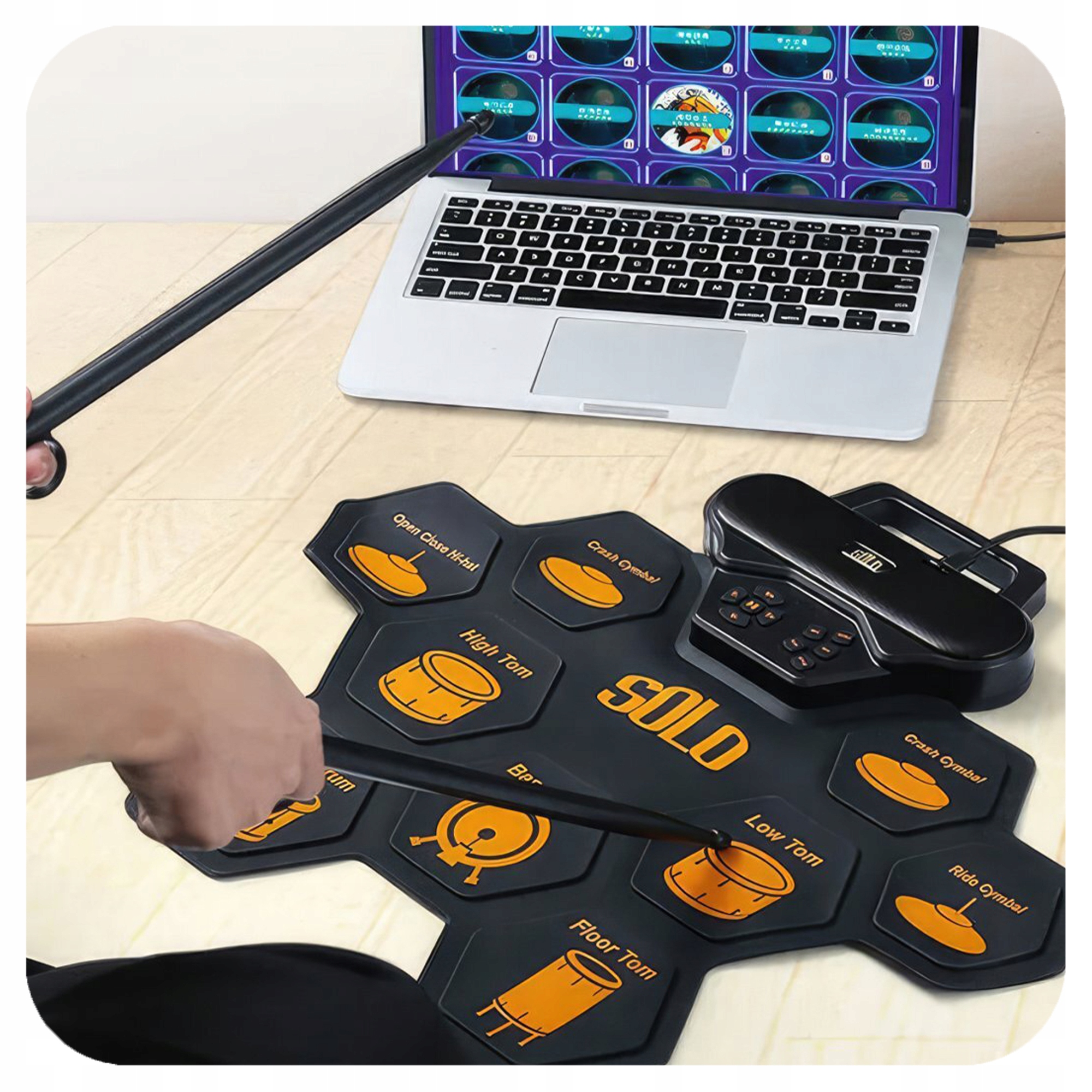 ПОРТАТИВНА ЕЛЕКТРОННА БАРАБАННА УСТАНОВКА USB-C З ПІДГОТОВКОЮ + НАБІР ПЕДАЛЕЙ ПАЛИЧКИ