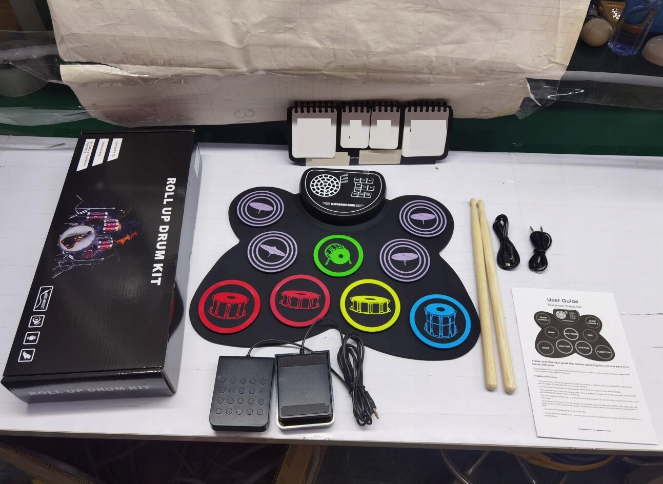ПОРТАТИВНА ЕЛЕКТРОННА БАРАБАННА УСТАНОВКА USB-C + НАБІР ПЕДАЛЕЙ ТА ПАЛИЦЬ