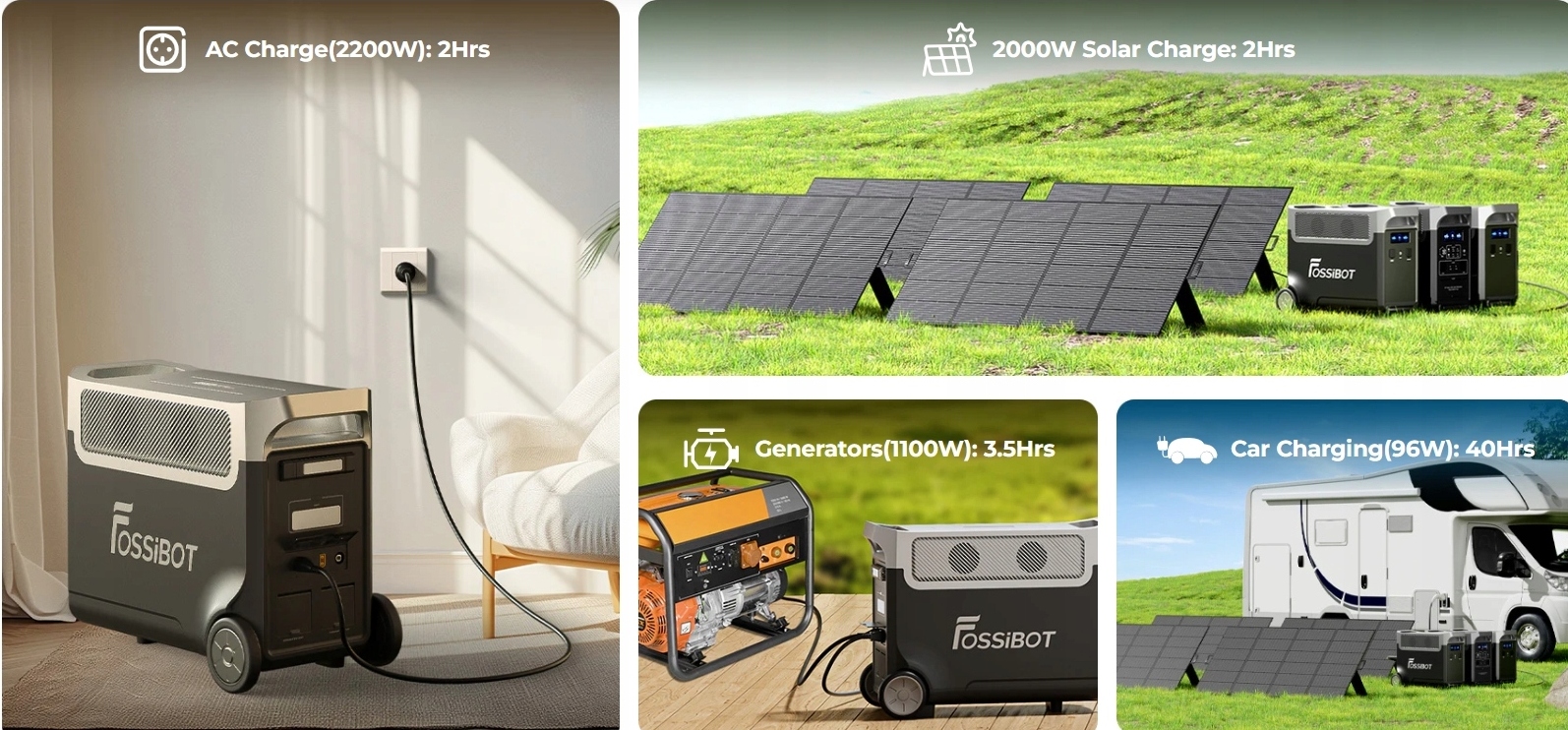 ✅ надзвичайно великі великі розширюються до 11520wh: fossibot f3600 pro підтримує 2 додаткові батареї (необхідні адміністраторів для покупки), які є розширеним контролем від 3840 -батарей> для покупки), що розширюється управління > від 3840 -батарея> до може бути підключений до потужності протягом більш тривалого періоду часу. Незалежно від того, чи блукаєте ви на виході, чи додаткове джерело живлення в домашніх умовах, Fossibot F3600 Pro значно розширить вашу електроенергію, яка доступна для вашого енергетичного живлення. 4 Не має значення, якщо ви постачаєте свій будинок, ви завантажуєте велику кількість електроінструменту під час кемпінгу, або вам потрібно поставити медичне обладнання на місцях, ця електростанція дасть їй усі поради. Його висока вихідна потужність до 3600 означає, що вам не потрібно хвилюватися, що пристрій чи пристрій не будуть перемикачем, завжди буде постачатися та стабільний вихід. F3600 Pro може працювати від багатьох пристроїв, вирішуючи проблеми з джерелом живлення на багатьох пристроях. 5 джерел живлення також доступні, що дозволяє використовувати пристрої та пристрої. Це швидка зарядка джерела живлення або повільна зарядка для розширення акумулятора , буде в стані зарядки в різних, максимізуючи пристрої та розширюючи діапазон.