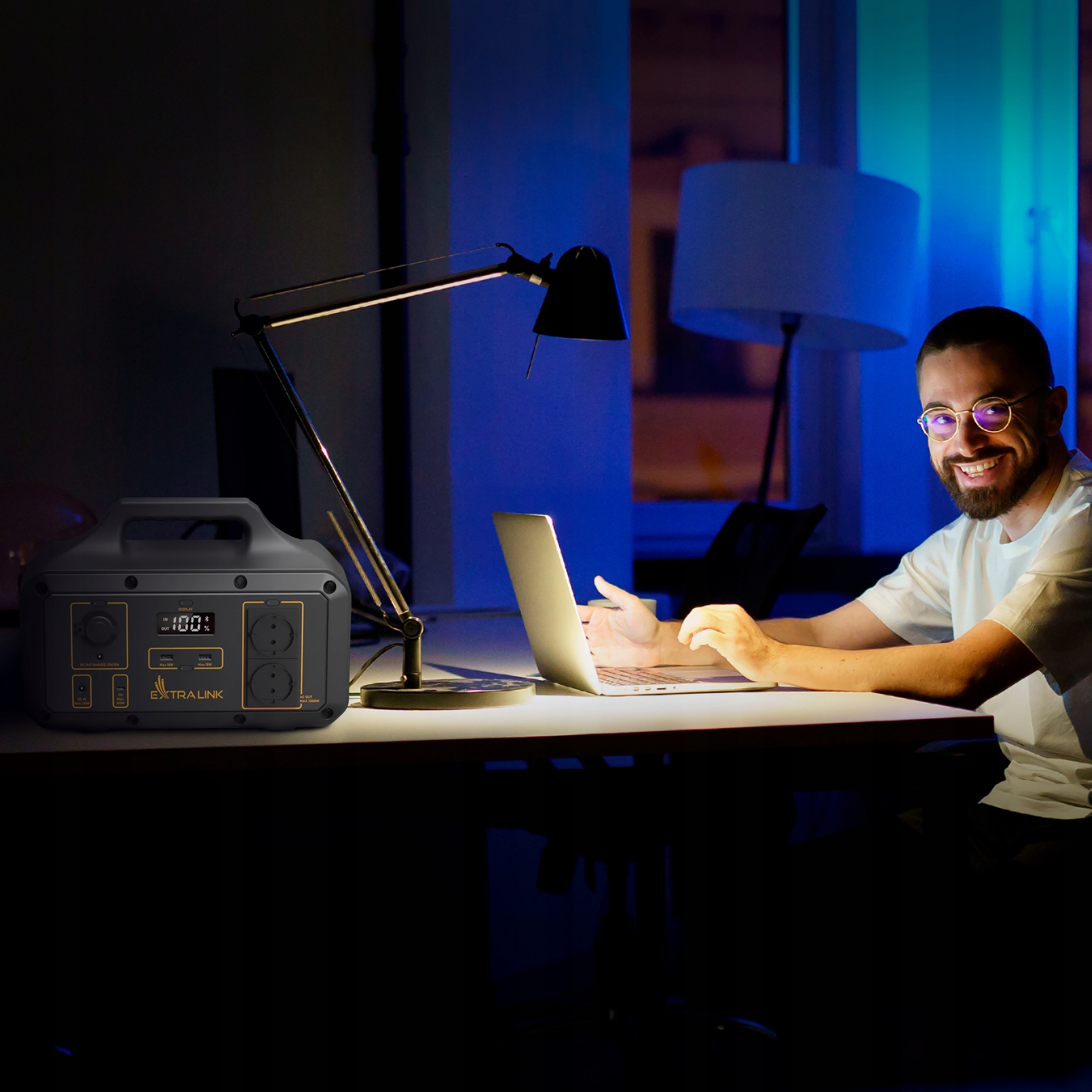 Якщо вимкнеться електрика, ви зможете живити найважливіші пристрої від електростанції Extralink. Якщо акумулятор починає розряджатися, швидко зарядіть його за допомогою побутової розетки змінного струму або підключіть сонячні панелі (продаються окремо).
