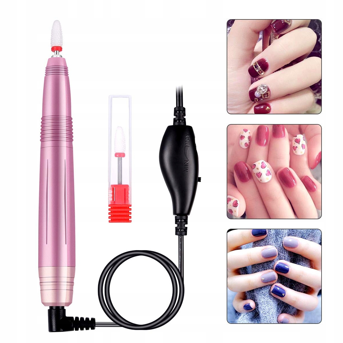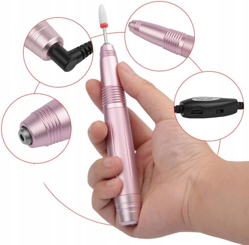 Сучасна та компактна портативна дриль для нігтів рожевого кольору – це сучасний пристрій, призначений для манікюру, полірування, підпилювання, формування, різьблення, пірсингу, свердління, наприклад, у кінчиках нігтів або акрилу, педикюру – видалення від натоптишів, натоптишів, натоптишів і т. д. Цей прилад здивує вас своєю потужністю. Це ідеальне рішення як для вашої вітальні, так і для домашнього використання. Обладнання характеризується гарним дизайном і високою якістю виготовлення та трудовою етикою.
